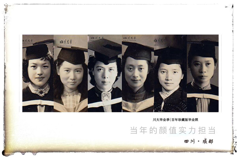 每一个年代,每一张毕业照片,都定格了每一代人的芳华。望江的明德楼、华西的钟楼 、江安的长桥都被学子们一同框入毕业证,定格下他们的芳华。