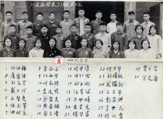 川医医学系71级2班毕业照。