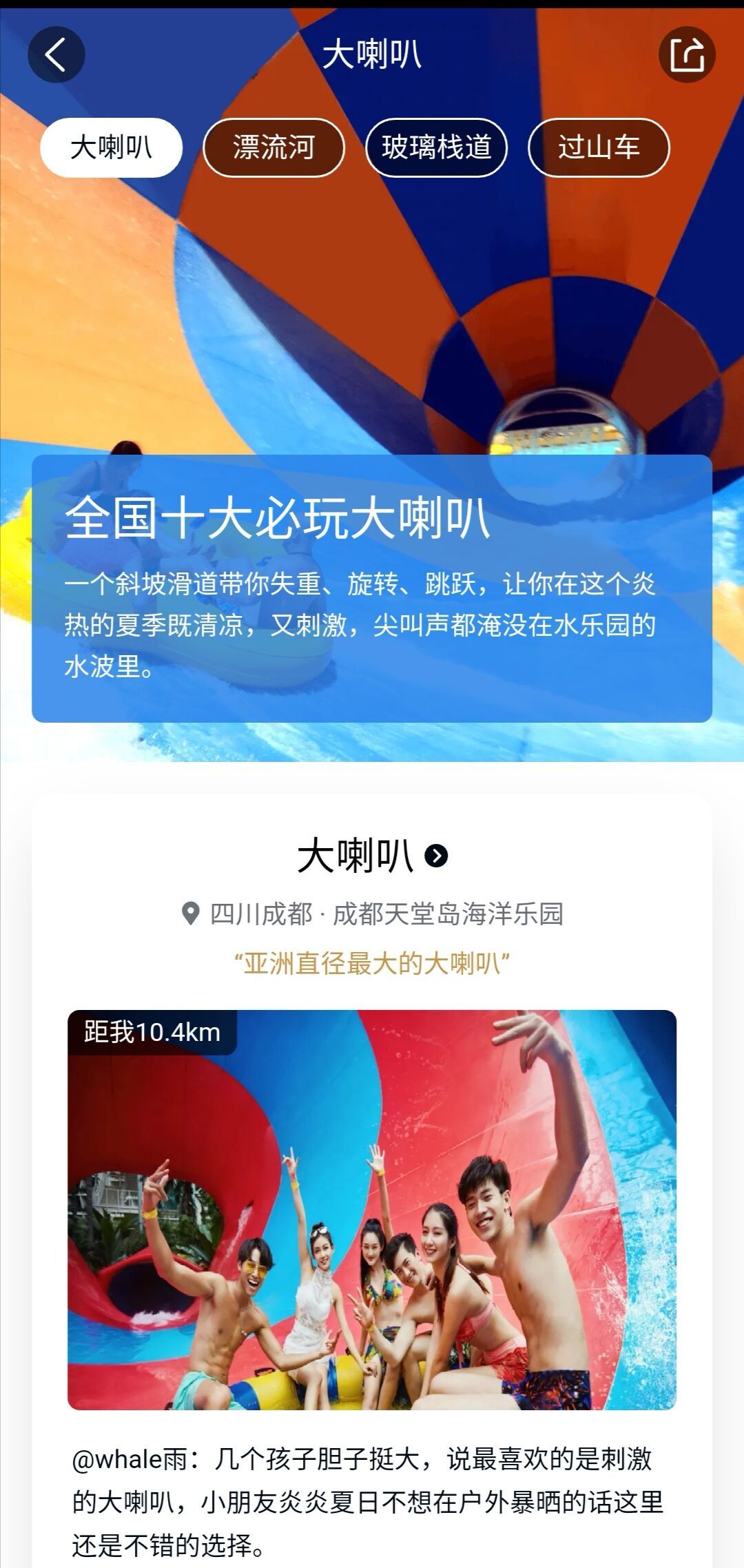 本次发布的“必玩榜”夏季榜,即是锁定了大喇叭水上滑梯、漂流河两大“水中游”项目,通过智能分析海量线上数据以及用户真实游玩体验,一共优选出全国10个城市15个主题乐园、景区,其内的相关场景玩乐项目都备受美团、大众点评用户欢迎和好评。从地域分布上来看,全国十大必玩大喇叭水上滑梯多数集中热情奔放的川渝地区。