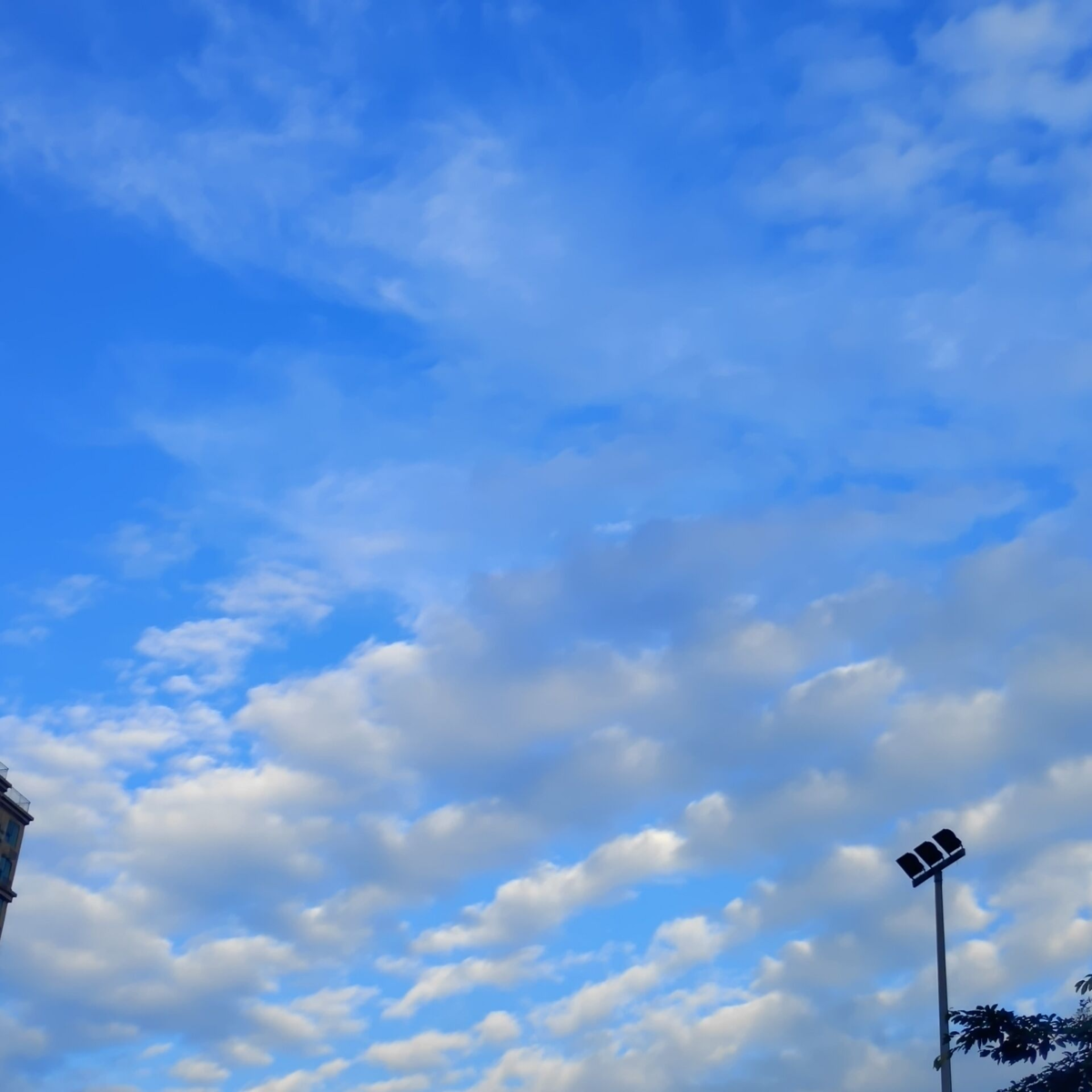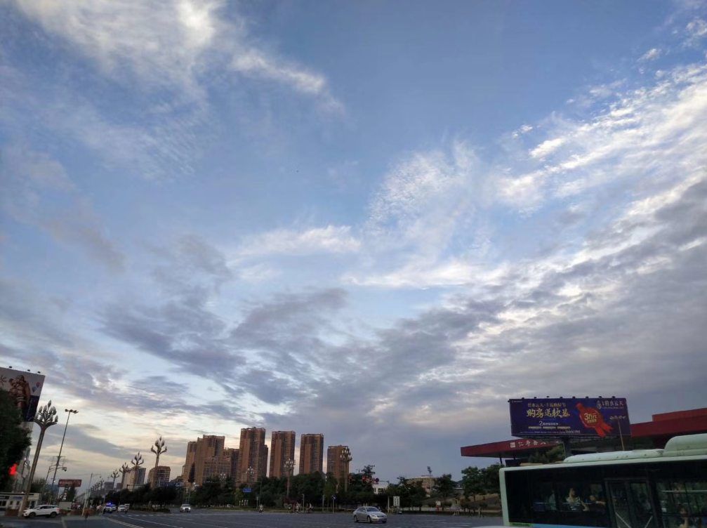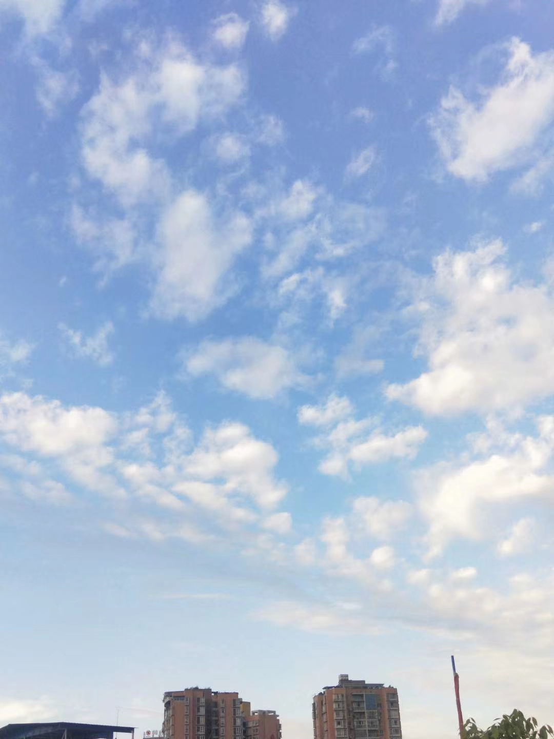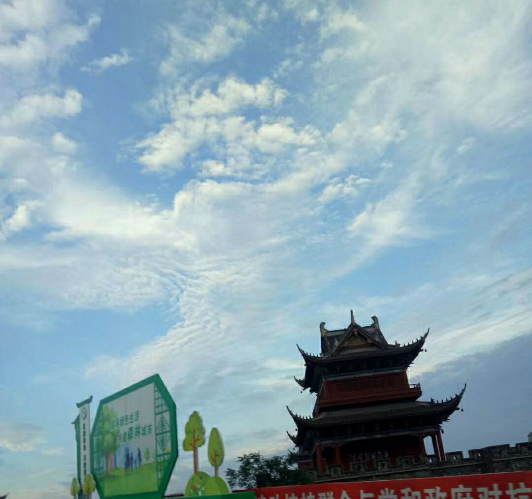 花宜带露观,云宜雨后看。昨日一上午的大雨后,眉山天空蓝得晶莹、澄澈,犹如一块蓝宝石,朵朵白云绵延其上,让天空多了一份诗意。