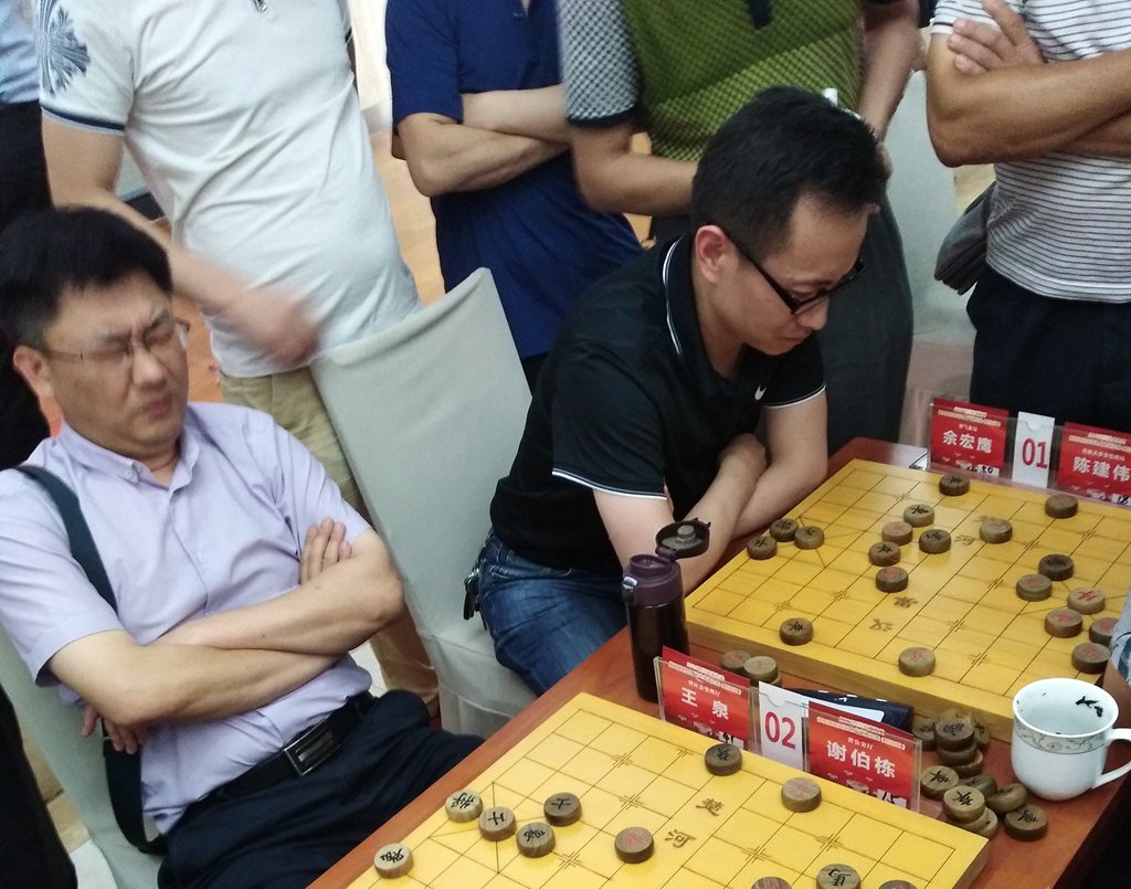 象棋个人赛前两名余宏鹰、王泉在最后一轮激战中。(廖果 摄)