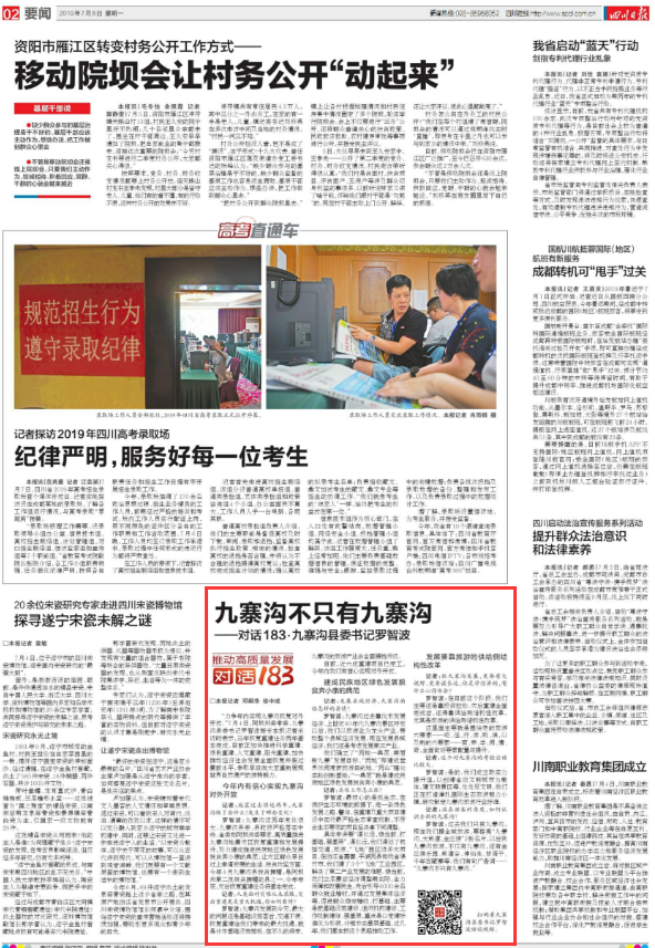 罗智波:九寨沟这两年变化很大。我们九寨沟县委、县政府严格落实中央、省委和阿坝州委的工作要求,高质量推进九寨沟地震灾区恢复重建和发展提升,努力建成推进民族地区绿色发展脱贫奔小康的典范,让灾区群众早日过上幸福安康的生活,争当民族地区绿色发展、全域旅游、脱贫奔康的典范。
