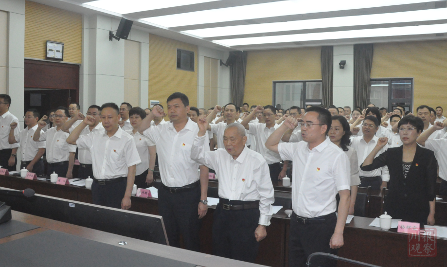 “我志愿加入中国共产党,拥护党的纲领,遵守党的章程,履行党员义务……”7月4日,达州市纪委监委小礼堂。鲜红党旗下,91岁老党员周永开庄严地举起右手,与百名纪检干部一起重温入党誓词。周永开挺直腰身,目光坚定,胸前的党徽熠熠生辉。