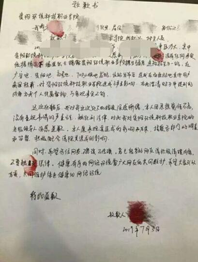 “我的梦想是当一名警察,但几天前做的事却相当卑鄙。”“因我们在网上发布的不实言论对贵校造成的损失我们深表歉意。”……7月3日下午,该团队前往资阳环境科技职业学院进行道歉,五人均对自己的错误行为表示深刻反省,并表示将主动尽力为资阳环境科技职业学院的招生工作消除负面影响。在道歉会现场,资阳环境科技职业学院相关负责人表示:“作为教育工作者,原谅你们,正是因为你们都还很年轻,有些还是学生,希望你们通过此事吸取教训,对法律常怀敬畏之心,在人生道路上才能行稳致远。”