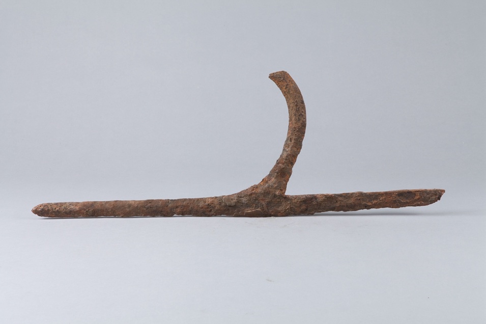 在四川参展的18件文物中,来自绵阳市博物馆的东汉铁钩镶、铁矛、铁刀、钱戈等兵器也颇引人注目。据介绍,三国时期的兵器中,钩镶排名第五。这是一种主要流行于汉代及三国,集钩束、防御、推刺三种功能为一体的铁制复合兵器。整体呈弓形,两头各有一个向外的弯钩,两钩中间为镶(盾)部,镶部后为把手,就像一块铁质小盾牌。与环首刀搭配,可以很好克制长戟等长杆兵器。在钩镶之外,绵阳市博物馆的一件长1.12米的铁刀也参加展出,它们共同勾勒出绵阳地区汉代军事文化特色。
