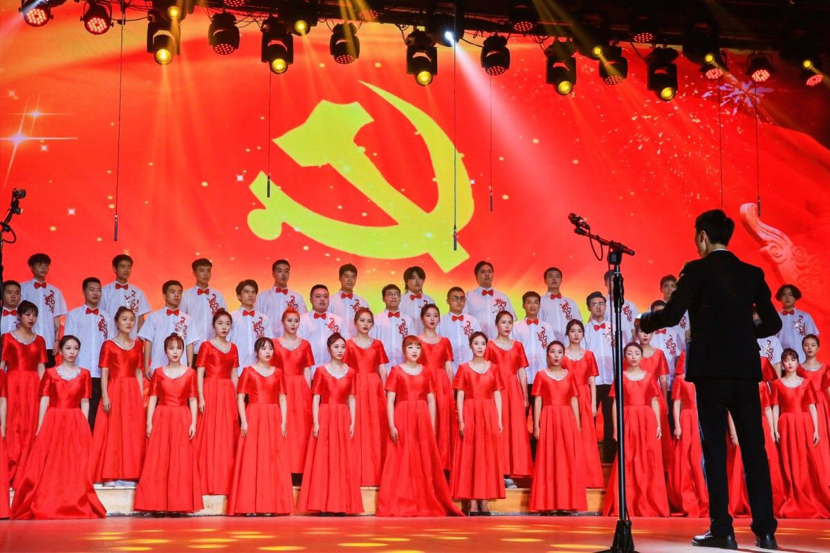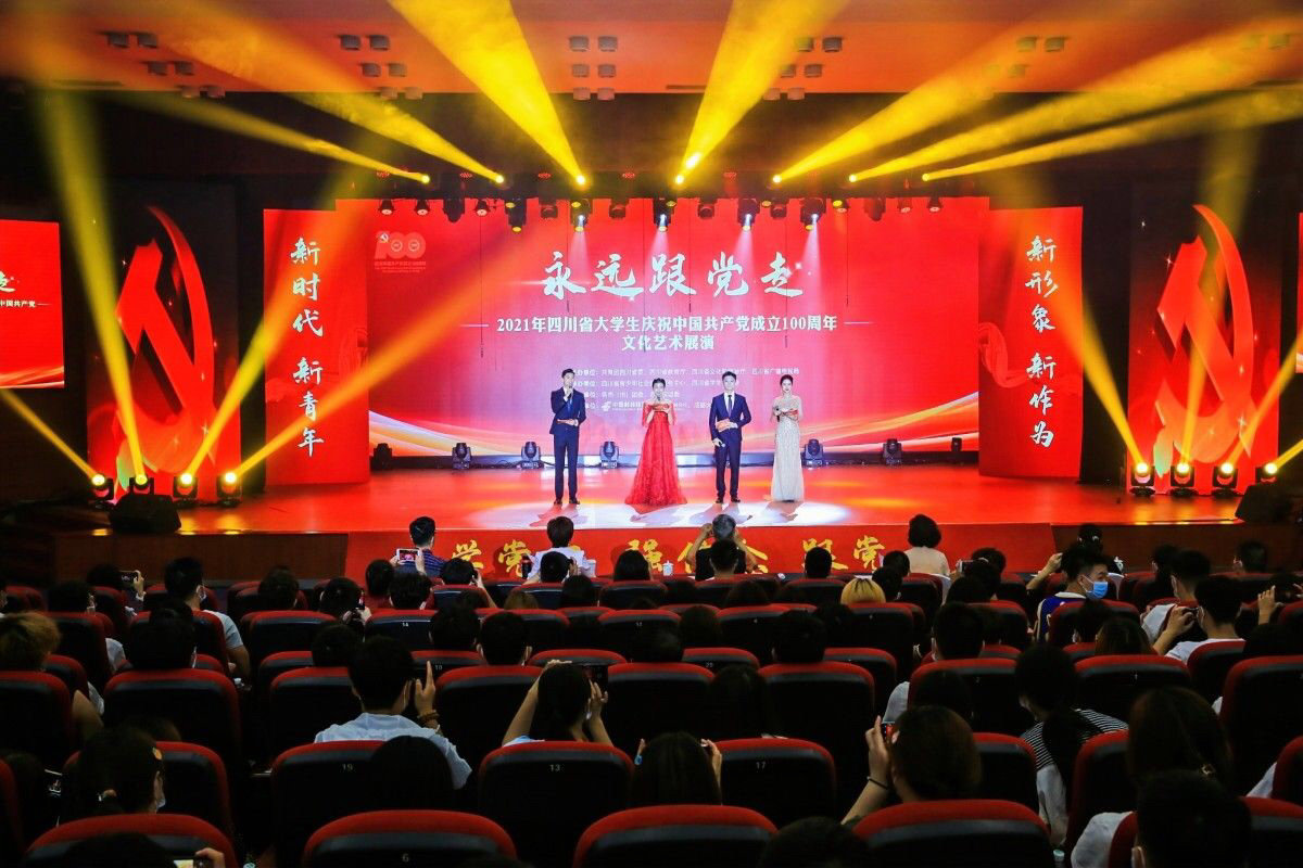 在展演活动现场,同学们把自己对党的生日祝福和深情礼赞,通过诵读红色经典、合唱红歌等方式,汇聚成新时代的青春之歌,展现出当代大学生的青春风采和艺术素养。在“红歌嘹亮”项目活动现场,来自四川音乐学院的《保卫黄河》、四川师范大学的《狂雪》、四川轻化工大学的《沂蒙山歌》等纷纷惊艳亮相,赢得阵阵掌声。在“语言创作”项目活动现场,四川师范大学带来的《我们的青春时代》、西南民族大学带来的《谁是最可爱的人》、四川传媒学院带来的《八女投江》等纷纷表达了当代大学生对中国共产党最真挚的爱,引起现场观众热烈共鸣。最后,展演活动在《没有共产党就没有新中国》的大合唱中顺利落幕。