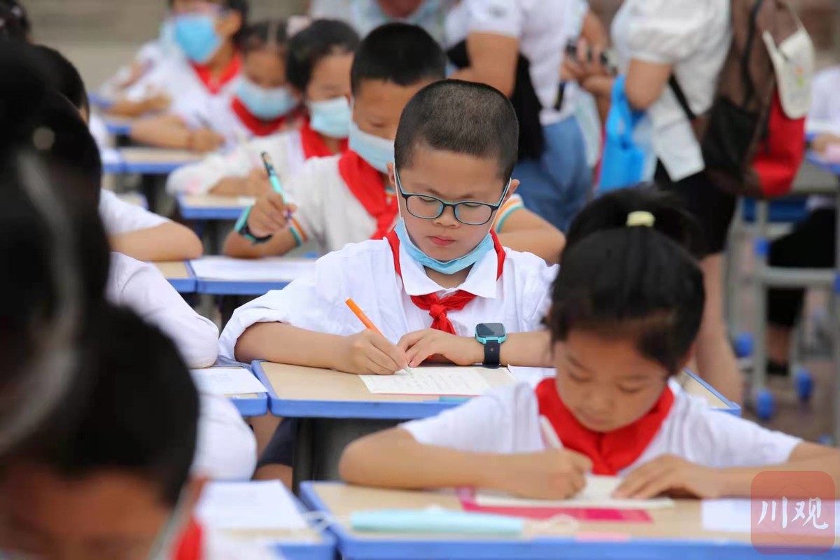 6月20日上午,遂宁首届中小学生规范汉字书写大赛决赛在船山区犀牛堤广场举行。100名参赛选手,一笔一划,在参赛纸上写下歌颂祖国、歌颂中国共产党的诗词。