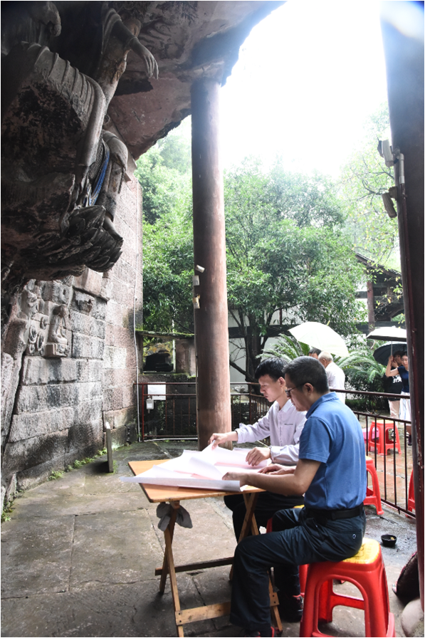 据白彬教授介绍,课题虽然立项于2013年,但准备工作和前期调查自2011年就早已展开,其领衔的研究团队运用四川大学考古学国家级实验教学中心所拥有的先进设备,与成都文物考古研究所等单位合作,对四川安岳、仁寿、丹棱3县15个地点500多龛佛道石窟和摩崖造像进行系统测绘和调查。在2013年课题正式立项后,课题组首先选择文物保护单位和石窟点均较多的安岳、仁寿、丹棱、通江、简阳等5个市县(区),以区县为单元,对境内所有宋代及以前的石窟和部分重要明清石窟的逐一进行调查和记录;其后又对成都市大邑、都江堰,眉山市东坡区、青神、洪雅、彭山,绵阳市涪城区、江油、盐亭,广元市利州区、剑阁,巴中市巴州区、恩阳区、南江、平昌,广安市武胜,南充市阆中,内江市东兴区、资中,资阳雁江区、乐至,重庆大足区、潼南区、合川、江津等10市25县(区)的部分唐宋至明代石窟进行调查和记录。
