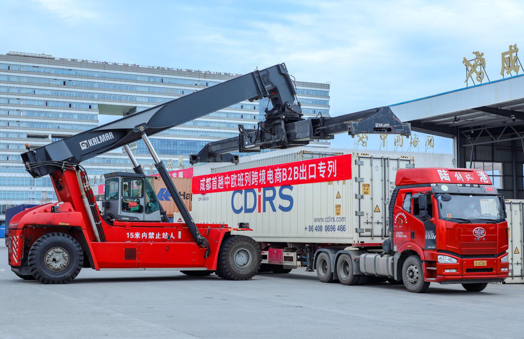 四川首趟中欧班列跨境电商B2B出口专列(青白江区委宣传部供图)