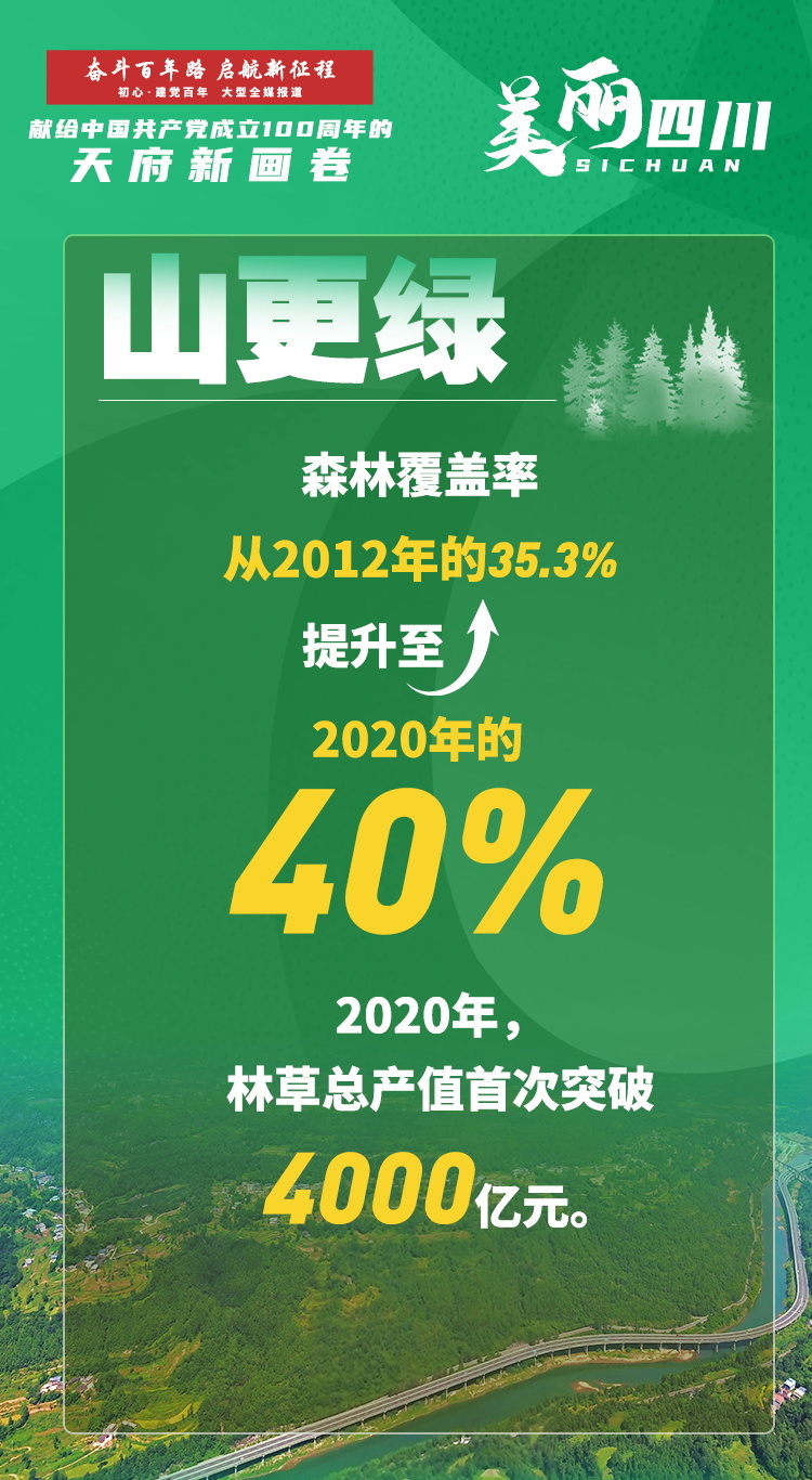 在中国共产党迎来百年华诞之际,四川用一抹浓厚亮丽的绿色,向曾经在这片壮美秀丽的土地上无畏奋进的革命先辈们讲述:岷山千里雪犹在,美丽四川展新颜。
