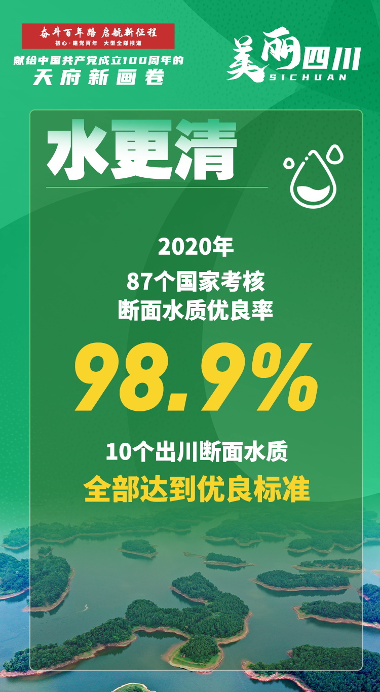 水更清了。去年,全省87个国考断面优良率98.9%,较“十三五”初期上升26.4%,岷江流域首次实现全面达标,全省水生态环境质量从“十三五”初期在全国排名第19位,跃至全国第8位。