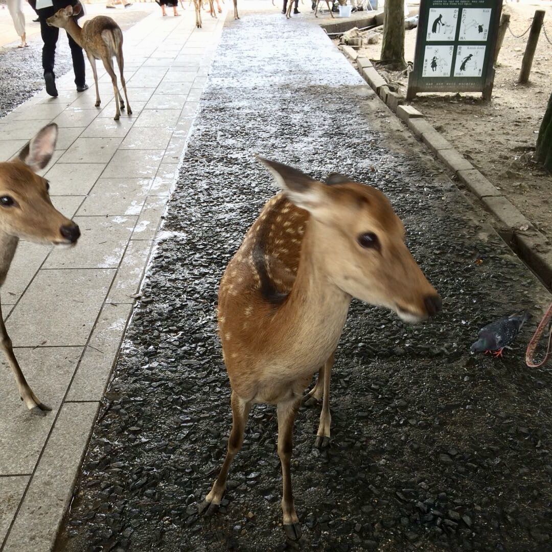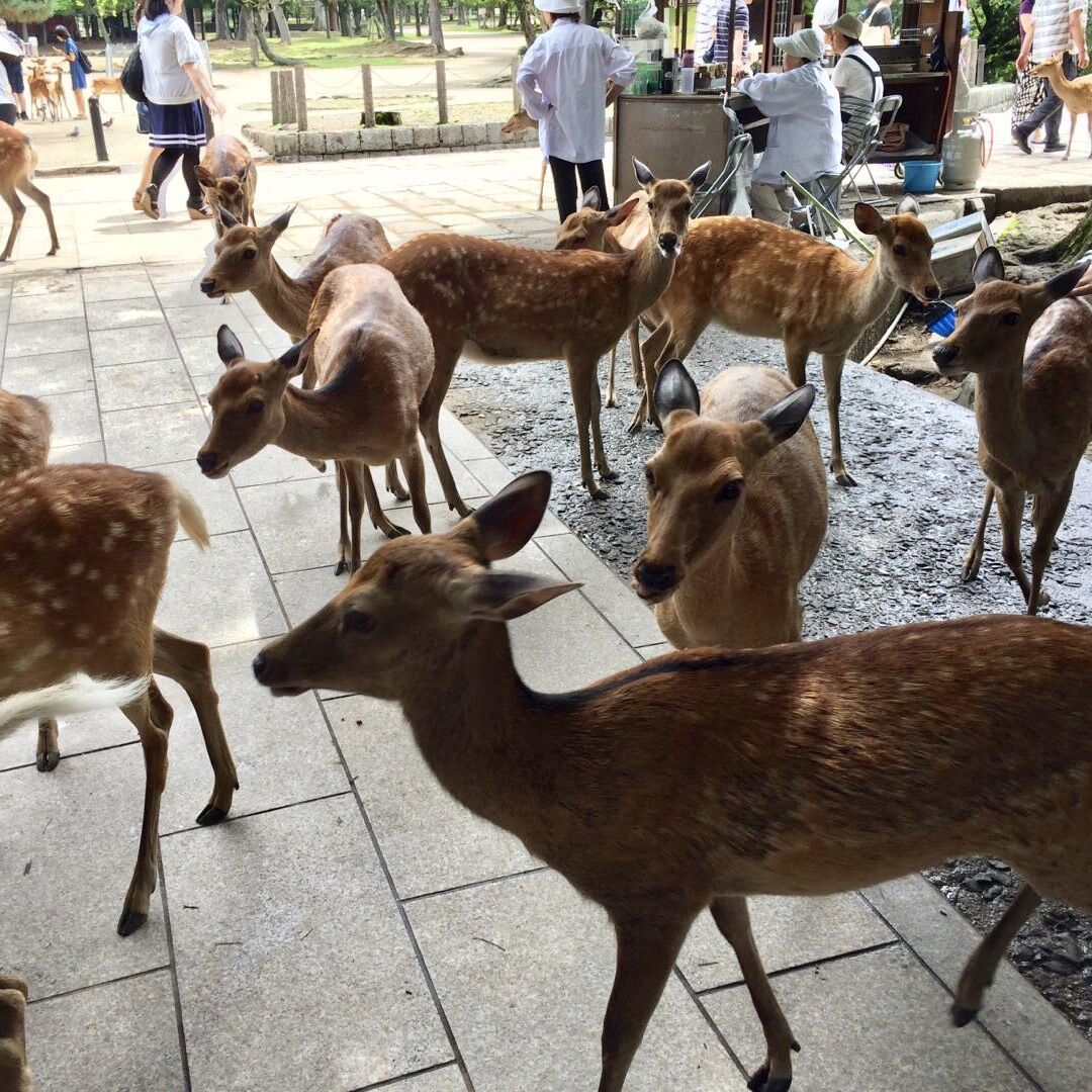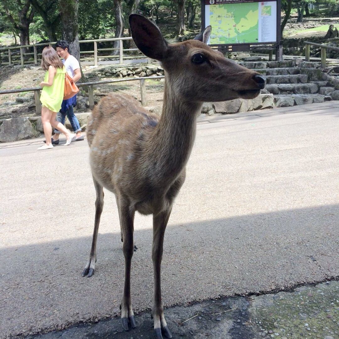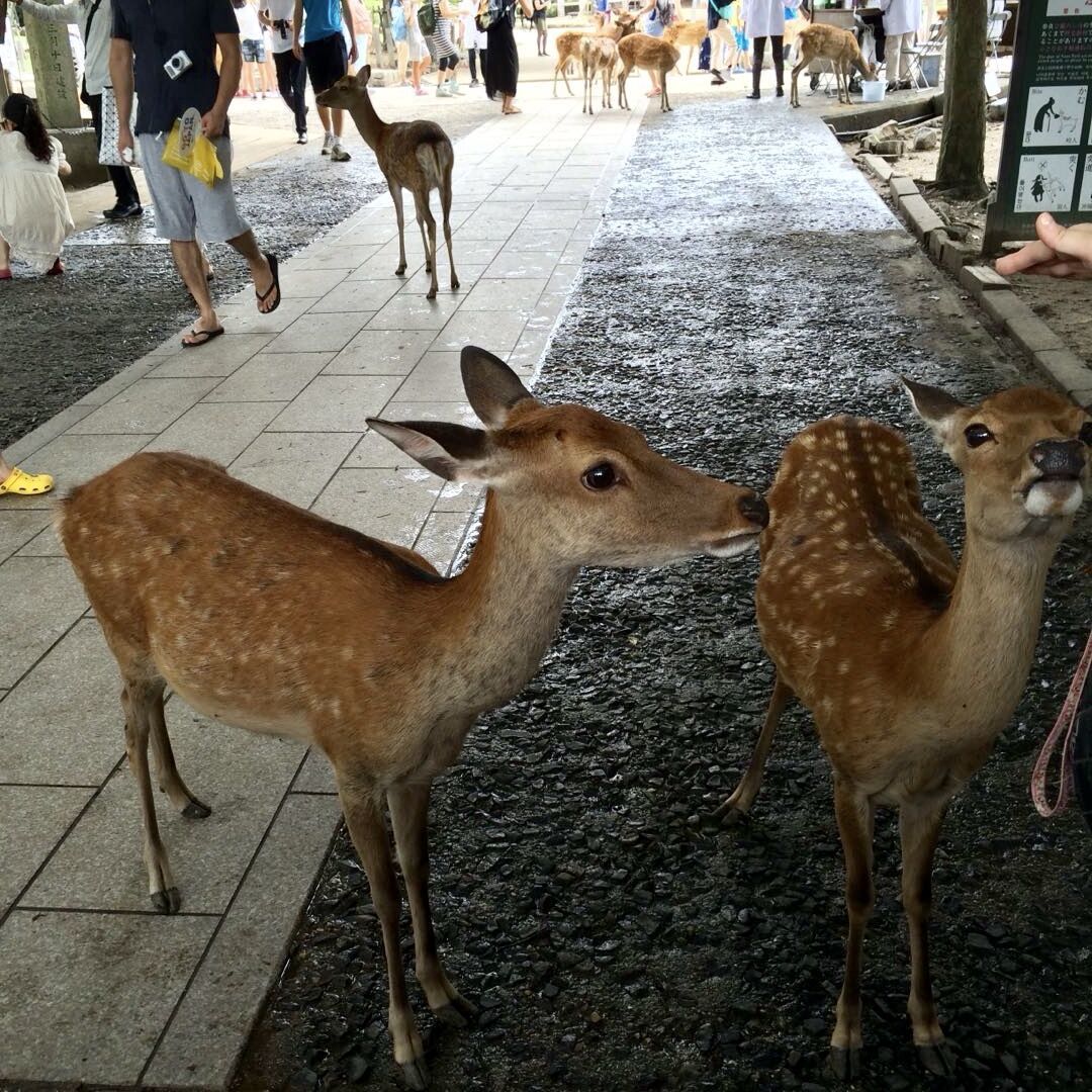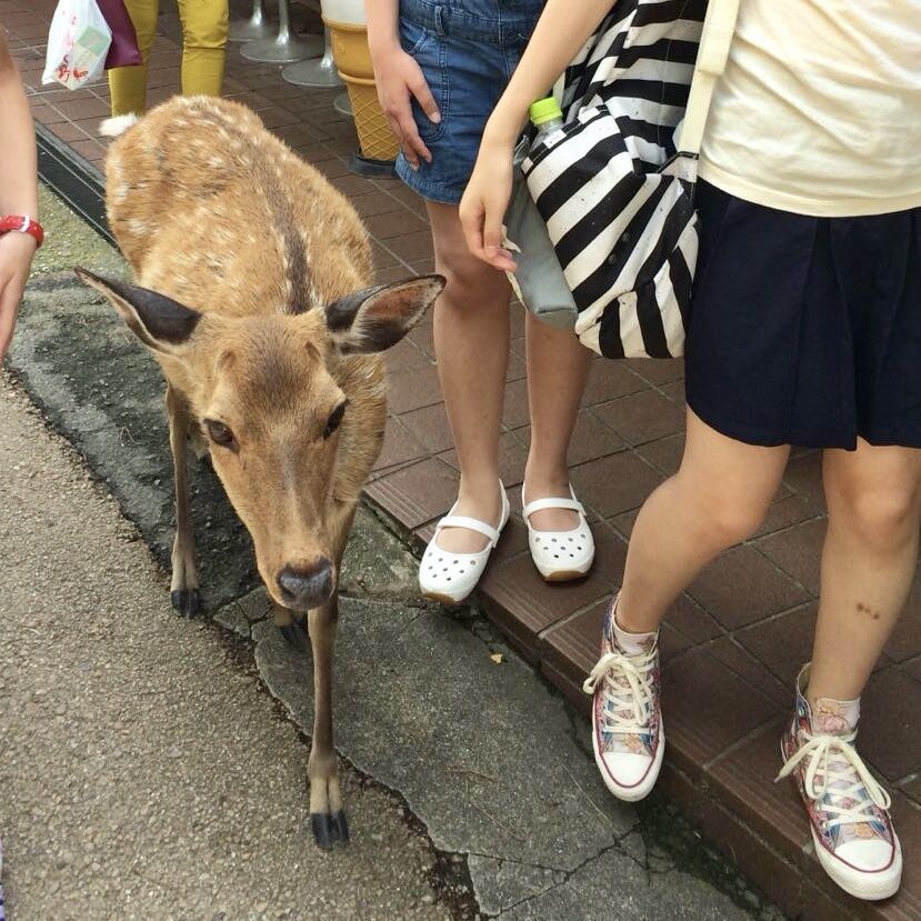 奈良是日本著名的观光胜地,这里拥有超过1200只野生鹿。其中梅花鹿更是被列为日本国宝,并守到法律保护。它们大多数聚焦在奈良公园,在附近游荡,寻找观光客提供的美味鹿饼。