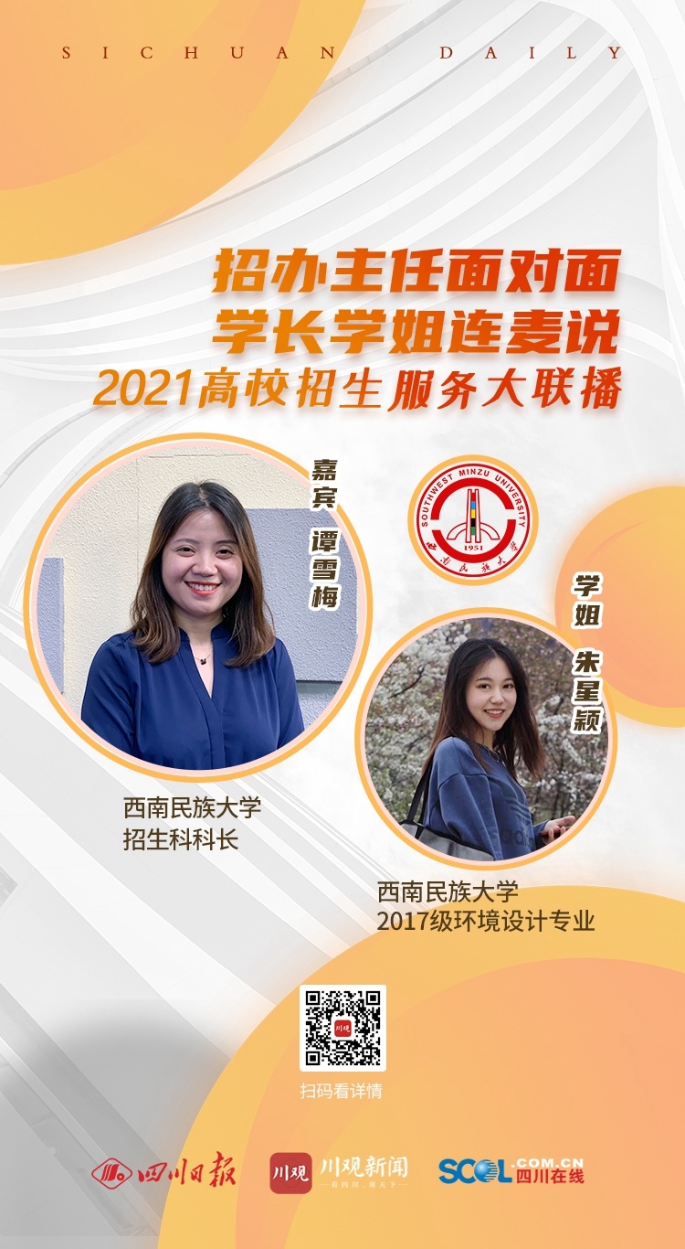 6月23日,由川观新闻重磅推出的“招生主任面对面 学长学姐连麦说”2021高校招生服务大联播第一场开启。西南民族大学招生科科长谭雪梅做客大联播,为考生和家长解读今年招生政策,解答热点问题。