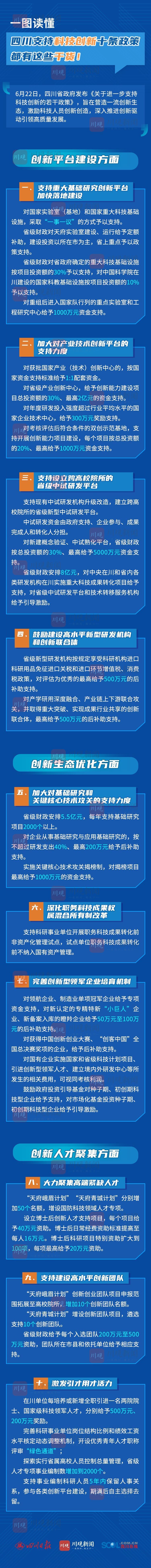 “省级财政安排5.5亿元,每年支持基础研究项目2000个以上”“对重组后进入国家队行列的重点实验室和工程研究中心给予1000万元资金支持”“省级财政安排8亿元,对中央在川和省内各类研发机构在川实施重大科技成果转化项目给予支持,对省级中试研发平台和技术转移服务机构给予引导激励”……在省科技促进发展研究中心主任王楠看来,“科创十条”最明显的一大特点就是“重投入,政策含金量极大”。