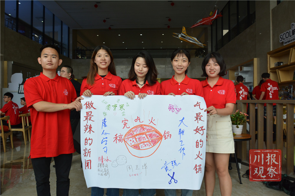 这一队的队员们相信再难写的稿子,也没有一顿火锅解决不了的,如果有,那就两顿!写完稿子去吃火锅代表着他们的人生态度,在好好工作之余也不忘享受生活。作为新闻人,他们将用情怀和责任创造有价值有意义的新闻,也用一顿热辣的四川火锅表达他们的乐观与积极。