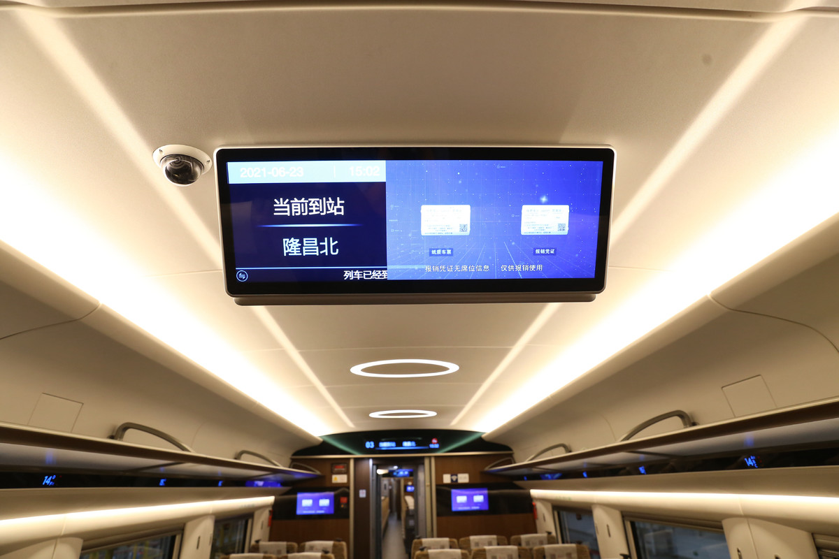 据了解,复兴号智能动车组设施更加完善,设有自动售货机、无障碍车厢等,车厢所有座椅均基于人因工程学进行了优化,增加了USB充电接口、可调节头靠、电动腿靠等,而且,智能运维水平也进一步提升。
