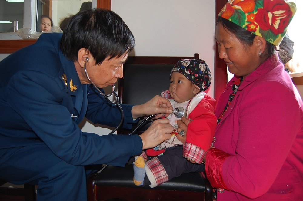 解放军空军总医院专家在为凉山儿童进行“先心病”筛查。