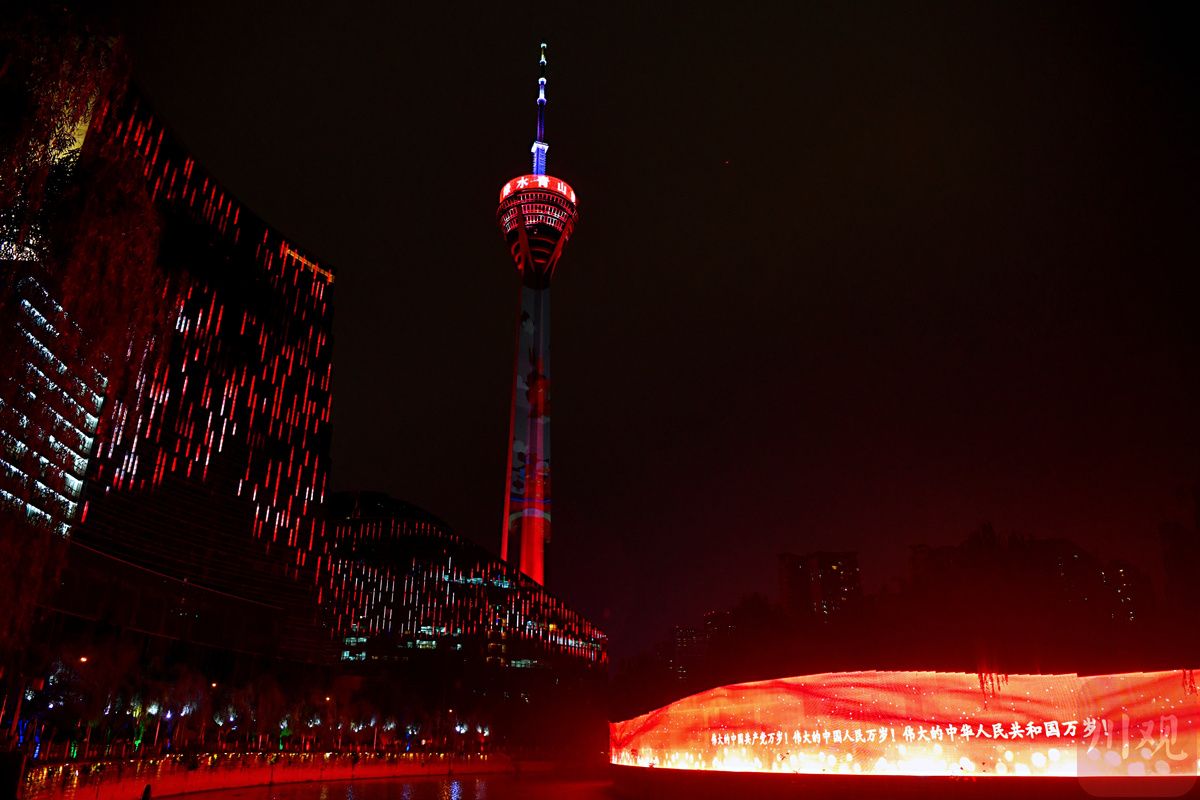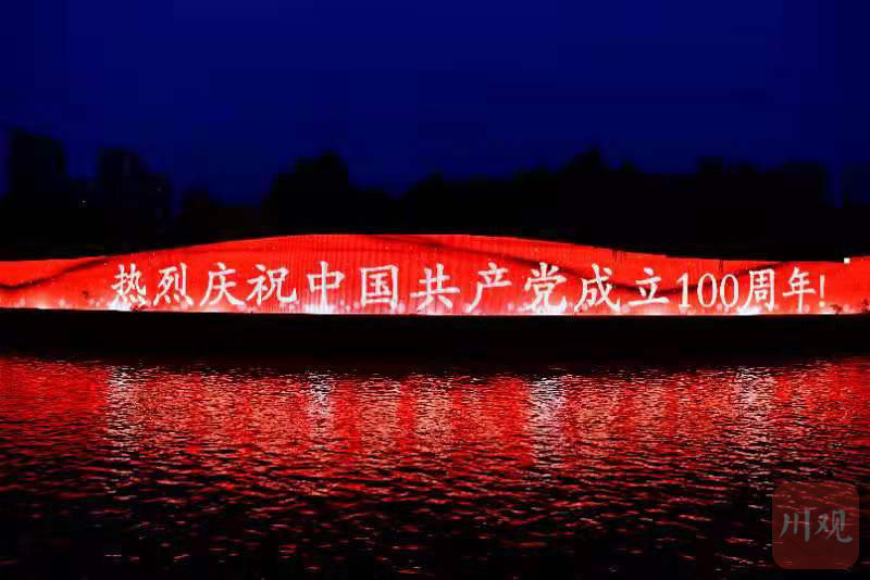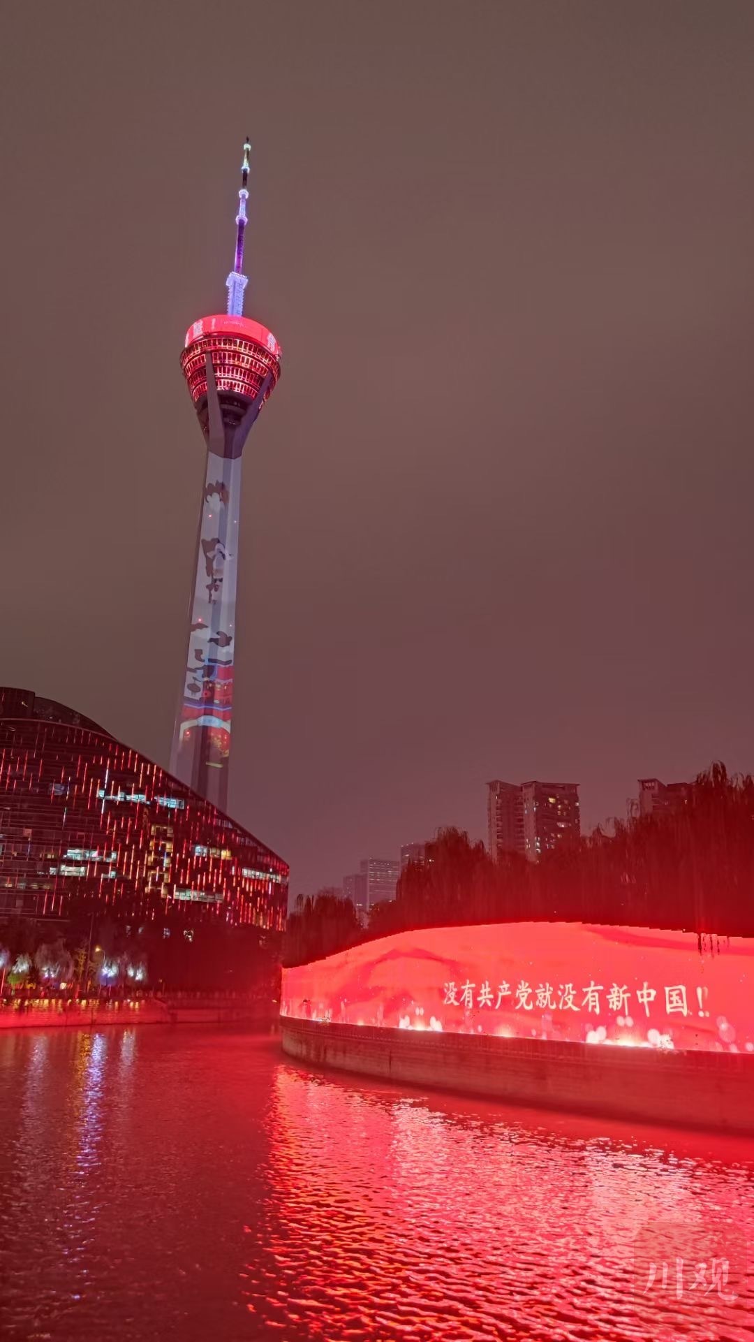 6月23日晚7点半,一场主题灯光秀在成都339电视塔上演,致敬中国共产党百年征程。“奋斗百年路,启航新征程”等标语在339电视塔轮番展出。不远处,锦江绿道上的光影长廊也被点亮,播放着“成都人心向党”等标语。展现了成都人民对中国共产党成立100周年的祝福。