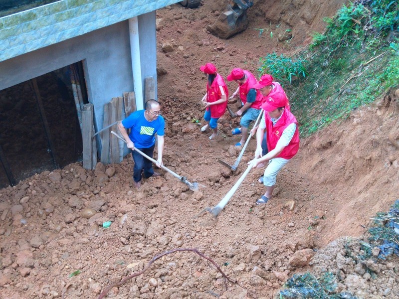 眉山市洪雅县中山乡邹岗村党员志愿者服务队上门为老人清理塌方泥土