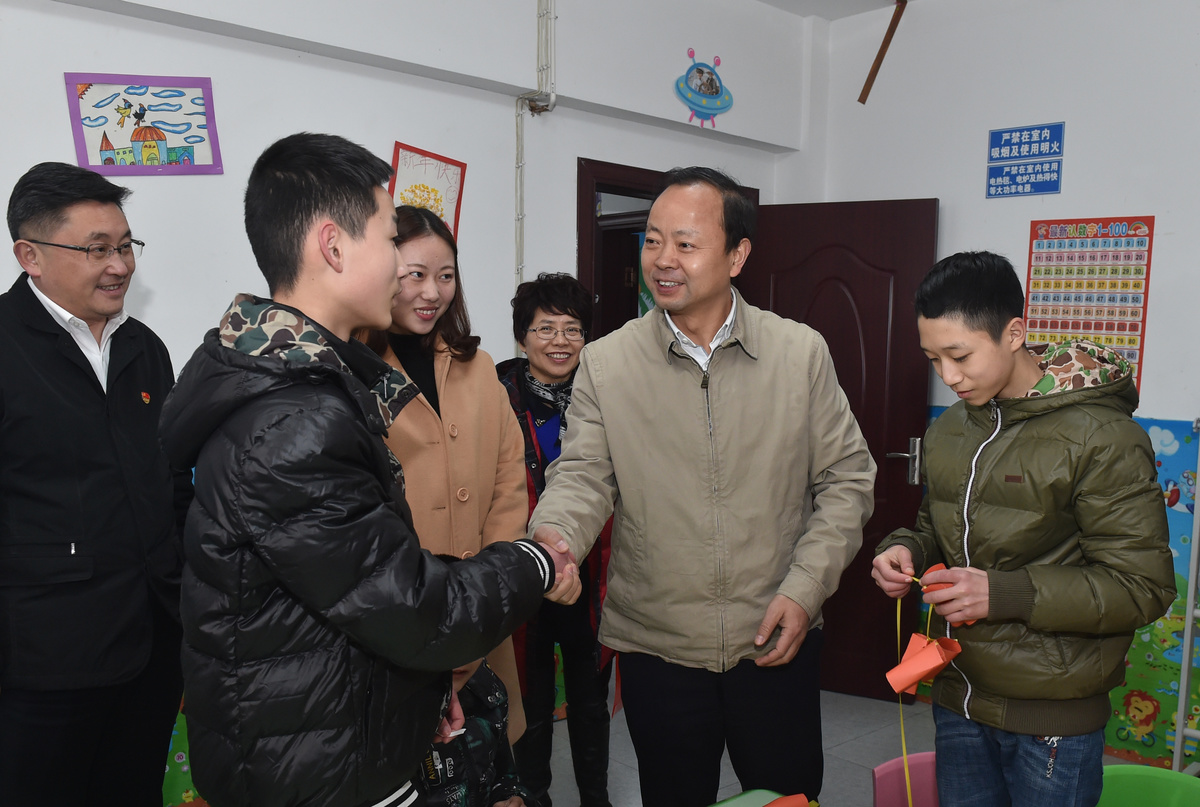 内江市委书记马波同志(右二)慰问福利院的孤儿