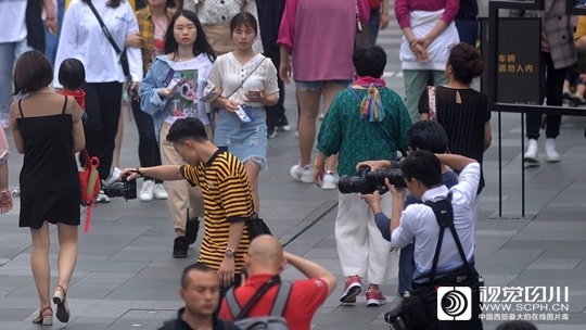 街拍者大都年轻、且充满活力。21岁的岑健豪是四川影视学院的大二学生。 “街拍很锻炼人,在学校完成课业后,我就坐公交车来城里闹热的地方拍,往返耗时要2个多小时,我的摄影技术就是在街拍中练出来的,街拍全靠抓拍功夫。上次李易峰回我们学校,我就抓拍到了独家的画面。”一年多的街拍经历,让岑健豪拥有了抖音粉丝上百万。