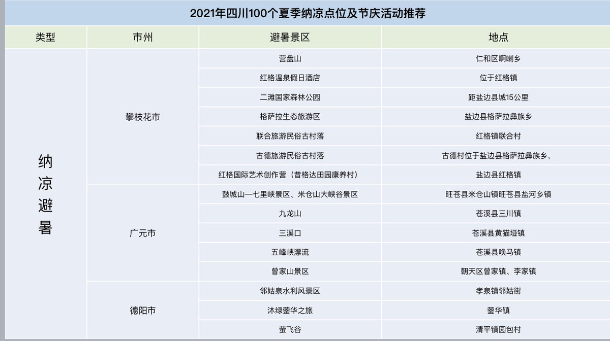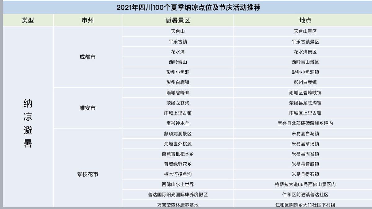 四川100个避暑地: