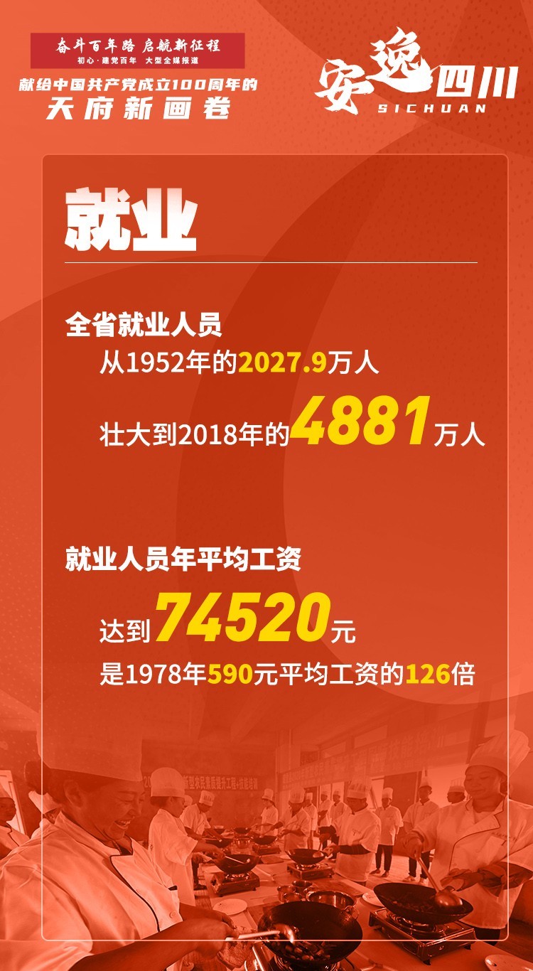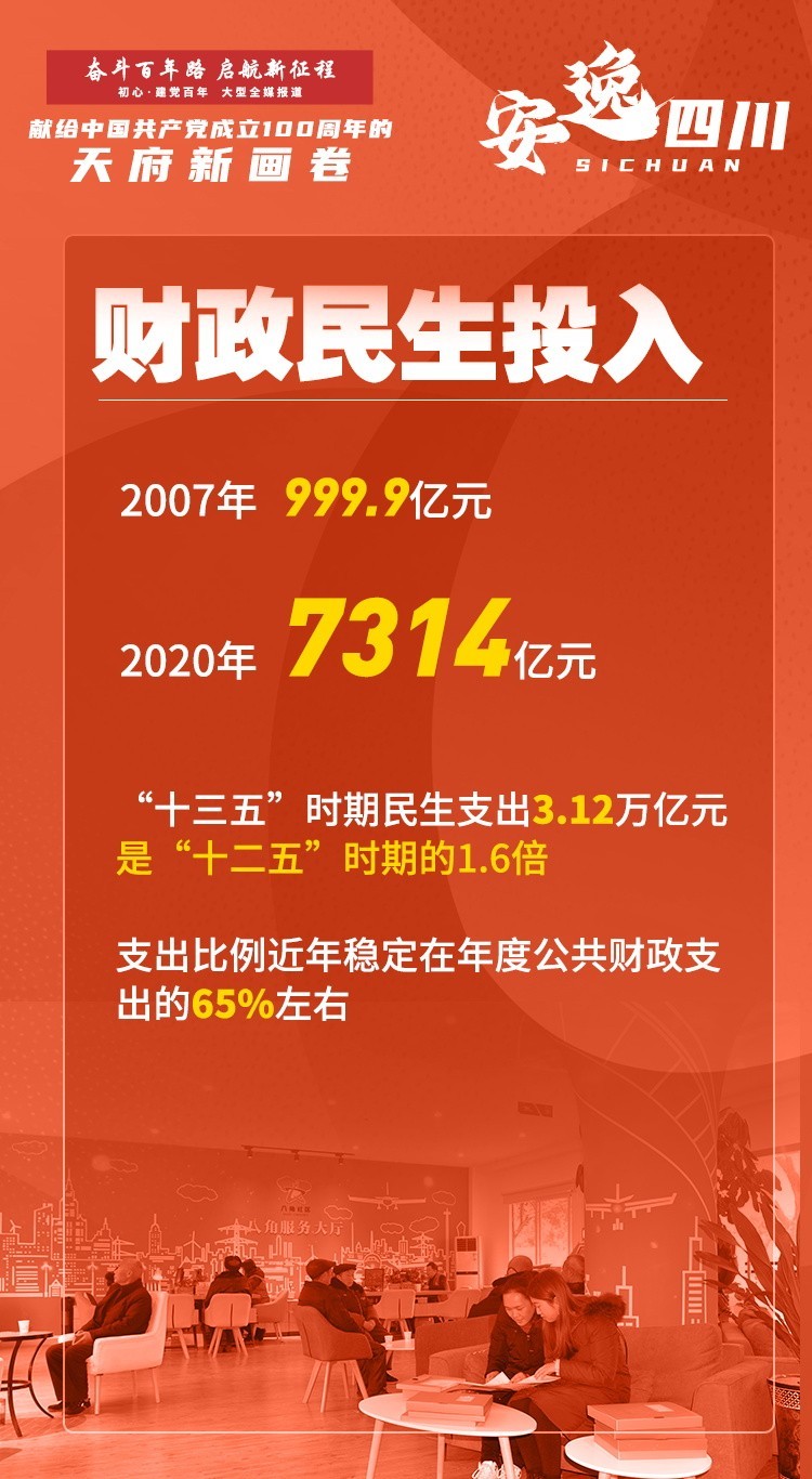 一路走来,四川始终坚持以人民为中心的发展思想,工作中突出重点,破解难点,回应热点,多谋民生之利,多解民生之忧。仅2020年,全省城镇新增就业96.2万人,442万困难群众纳入城乡低保,新改建农村公路1.6万公里,建设城乡公办幼儿园662所,为8000多万城乡居民提供12类基本公共卫生服务等,实实在在补齐民生短板。