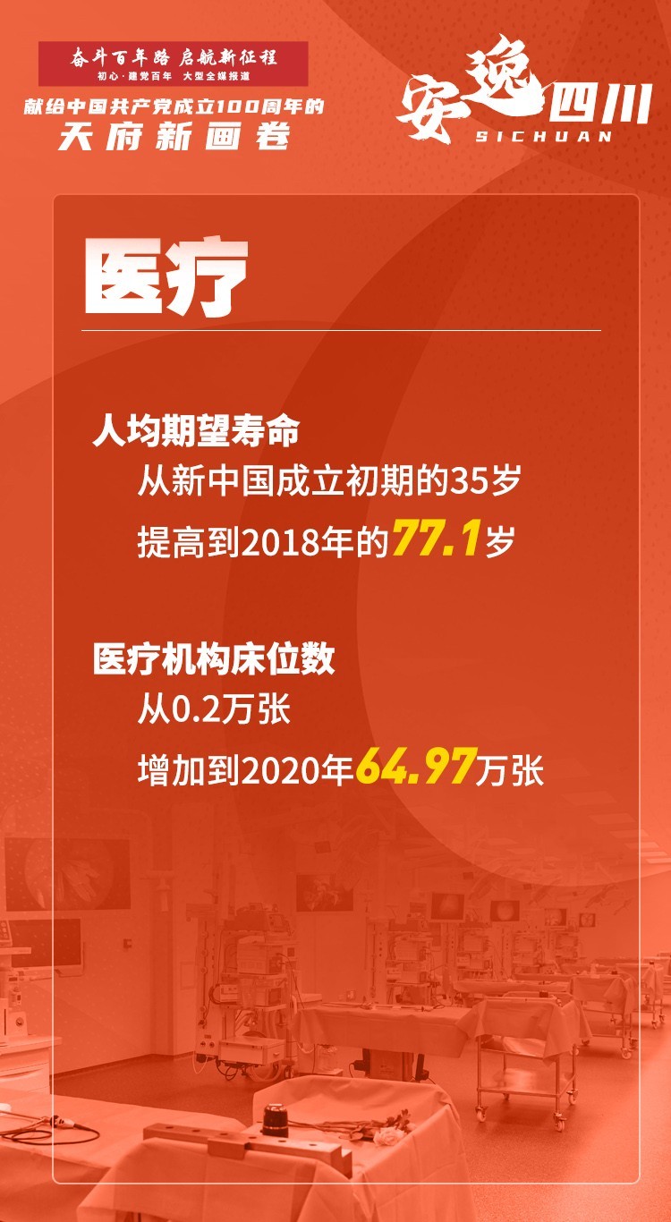 安逸,是社保网络越织越牢。新中国成立70多年来,社会保险从无到有,实现了从城镇职工“单位保障”到统筹城乡“社会保障”的根本性转变,基本建立起覆盖城乡居民的社会保障体系,有力保障了群众基本生活。2020年,全省参加城镇职工基本养老保险人数达2830.1万人,参加城乡居民基本养老保险人数达3224.2万人。养老服务也致力于打通“最后一公里”,82岁的洪雅县中保镇联合村空巢老人李素华,从去年开始得到互助养老服务队的帮助,“有人送降压药,有人帮忙加工大米,还有人陪我聊天……”