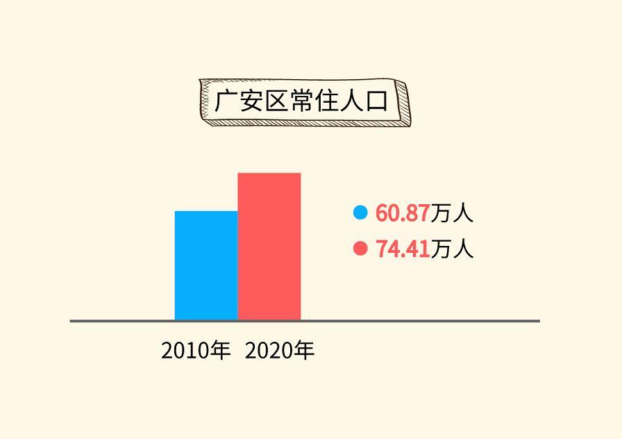 与2010年相比,广安区常住人口增加13.53万人。这显示,广安主城区的吸引力、吸附力大大增强。
