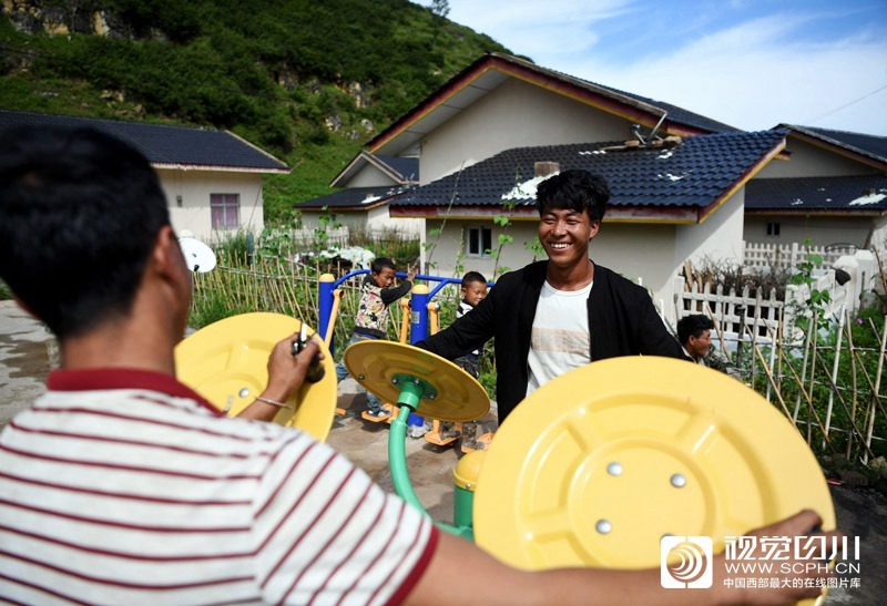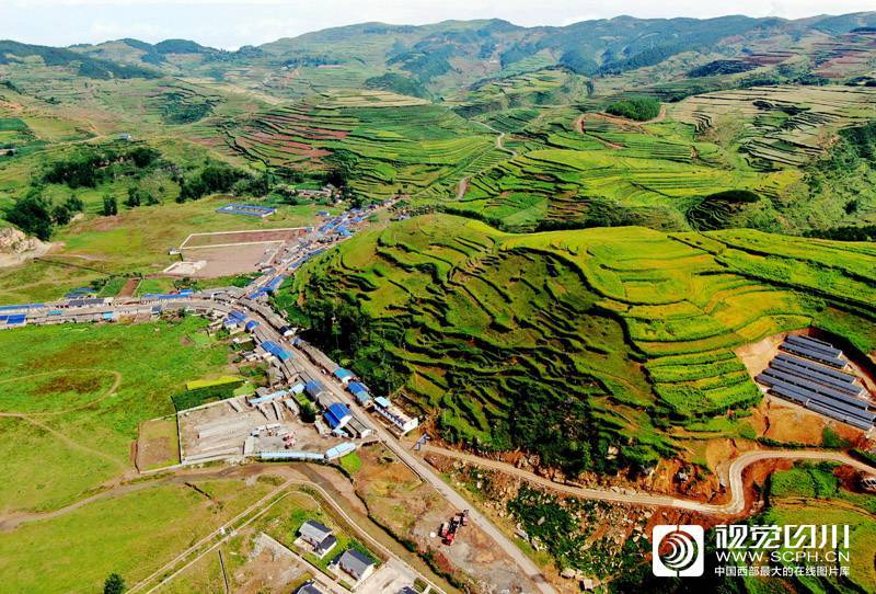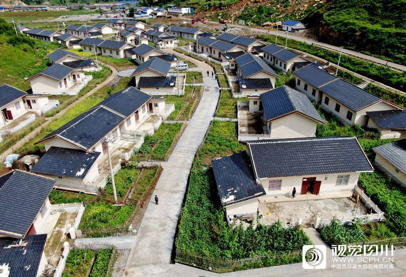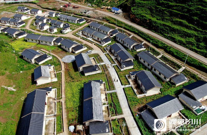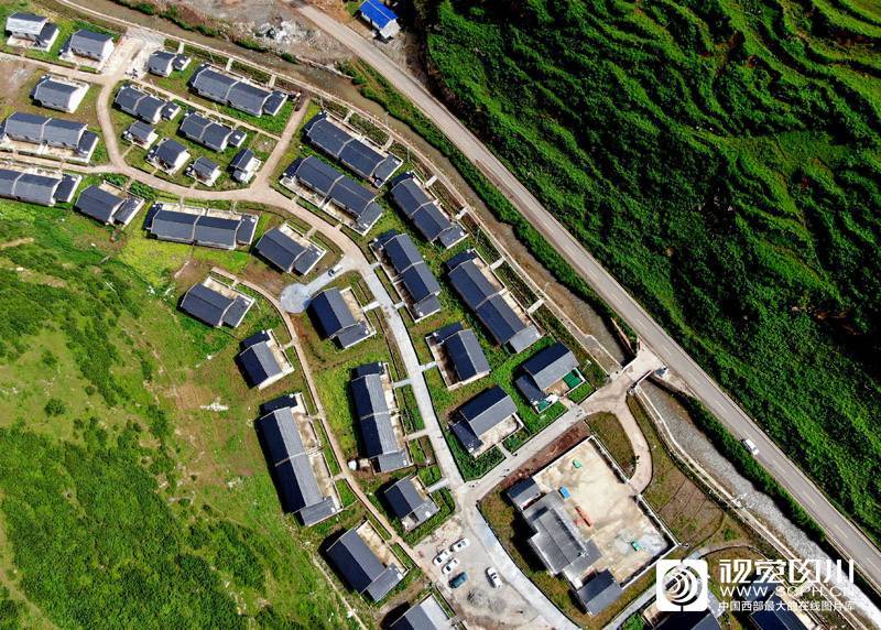 7月16日,鸟瞰昭觉县日哈乡的新建民居。这一片新建民居是日哈乡觉呷村和列托村共同从高寒山区(平均海拔约2600米)搬来的。(新居平均海拔约2100米)。