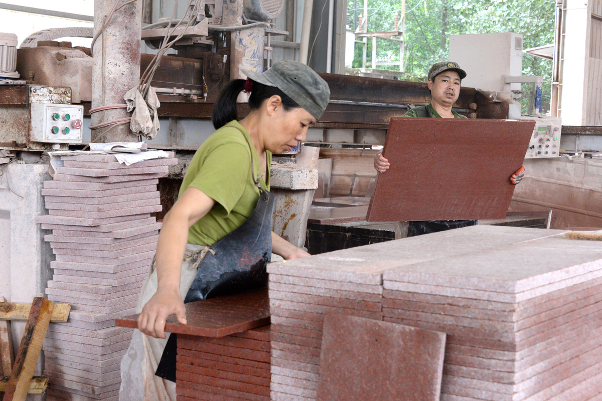 6月21日,记者来到荥经县建寅石材厂,生产车间“隆隆”的机械声不绝于耳。叉车、货车来回穿梭,经改毛板、火烧、再切、倒边等步骤后,一块块精致的花岗石被打包运走。