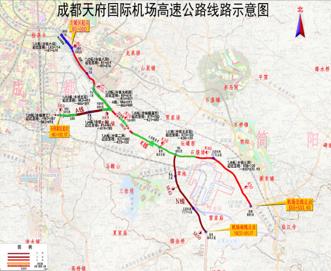 为了最大程度缩短成都市两大交通源与天府机场的时空距离,降低时间成本,天府机场高速采用了双起点,分别对接成都主城区、天府新区,对接主城区段更是省内新建高速公路首次采用8车道标准。