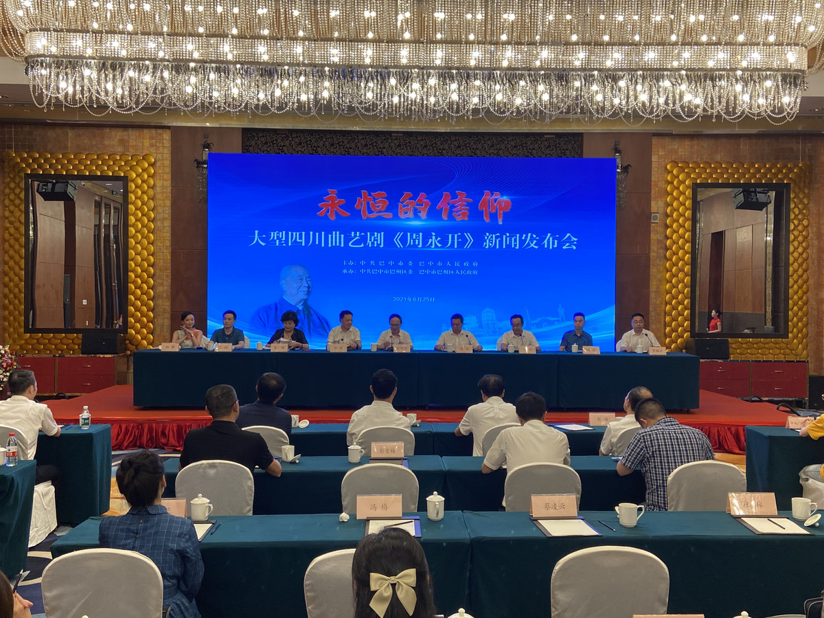 6月25日,永恒的信仰——大型四川曲艺剧《周永开》新闻发布会在成都召开。该剧由中国曲艺创作委员会委员秦渊编剧,中国音乐家协会会员向胜作曲;成都市川剧院副院长、国家一级演员,中国曲艺牡丹奖获得者王超、杨娜及巴中市各机关、乡镇工作人员、退休文艺工作者、社会文艺骨干、学校老师等本地人参演,将于7月初在巴中正式亮相。