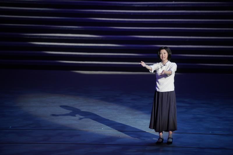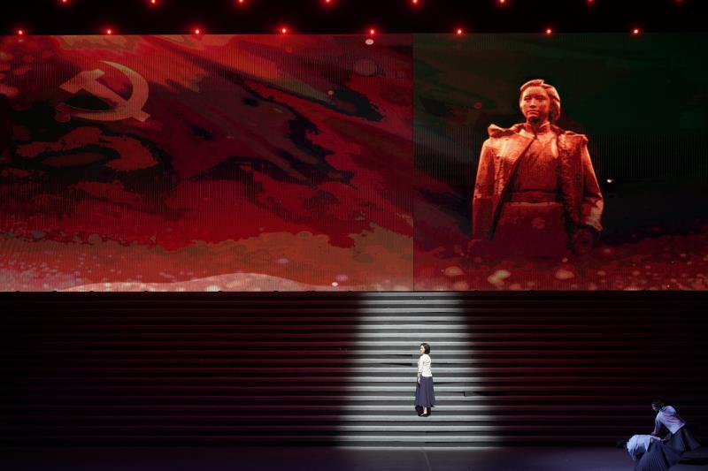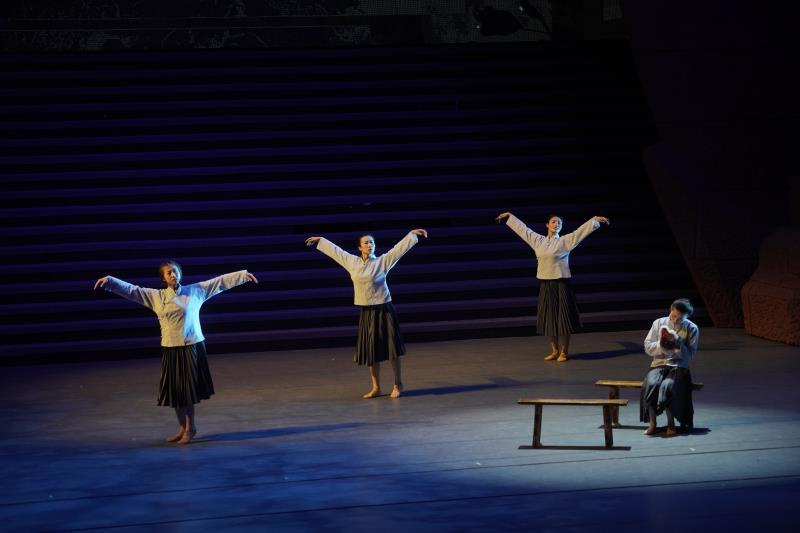 距离董凡不远处,四位年轻舞者,通过舞蹈再现这一人物波澜壮阔的一生。她们代表了赵一曼人生的四个阶段。当她刚加入革命时,舞蹈是阳光活跃的;当她初为人母时,舞蹈增添了一份慈爱柔情;到了她叱咤东北的抗日战场,舞蹈风格则变得铿锵有力,展现其‘红枪白马女政委’的形象;到了就义这一阶段,舞蹈由铿锵有力变得愈发英勇,展现她的无畏和无悔。