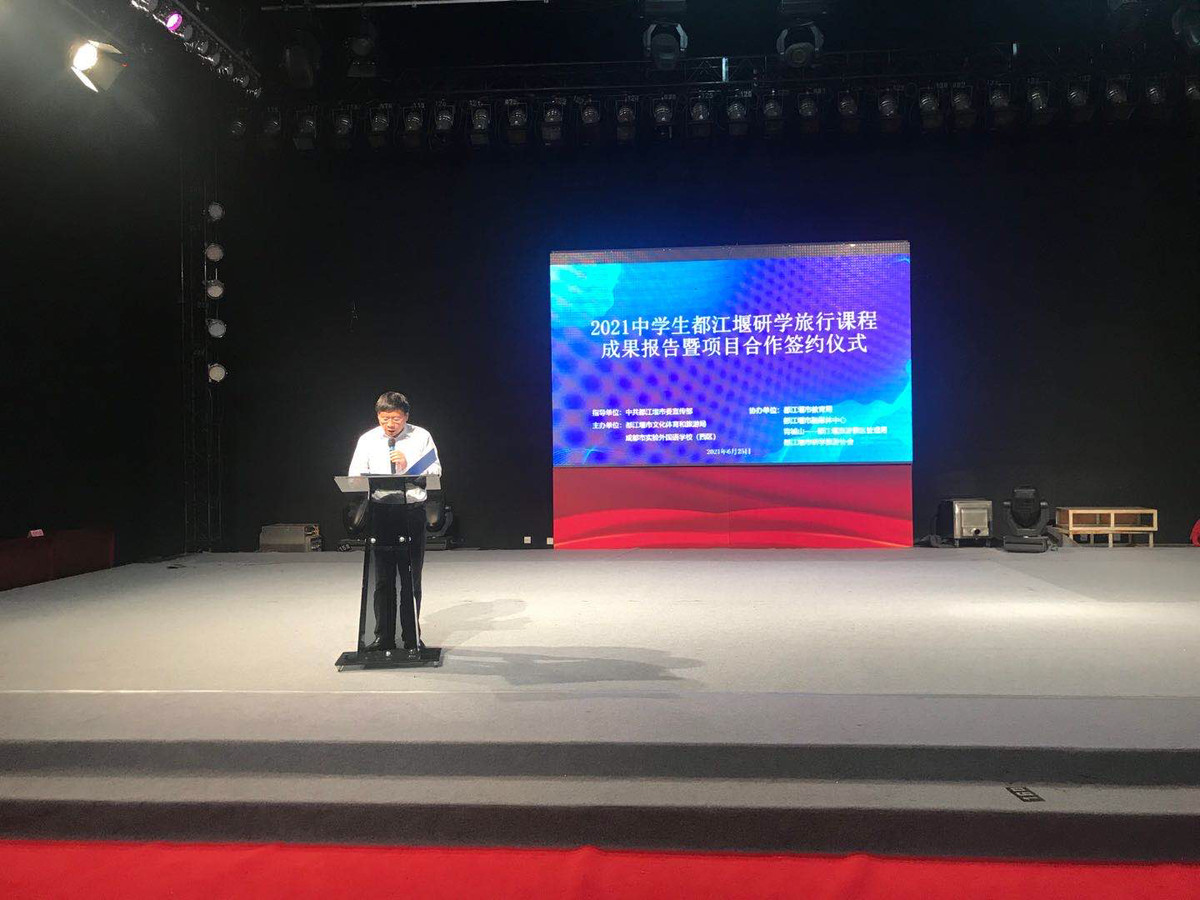 “都江堰水利工程不仅涵盖了丰富的数学、物理学、地理学、天文学、历史学、考古学、生态学、管理学、社会学、宗教学、哲学、语言文学等科学与人文知识,也蕴含了人类文明创造中独特的思想智慧,是学生开展研学旅行的物质和精神宝库。”6月25日,2021年都江堰水利工程研学旅行课程研究成果报告会暨研学旅行发展合作签约仪式上,成都市实验外国语学校(西区)校长肖明华表示,该校和都江堰市文化体育和旅游局签署合作协议后,将建立“都江堰研学旅行”课程项目长期合作关系,互为该课程研发与实施的重要合作伙伴,将建立“都江堰研学旅行课程研发与实施基地”。