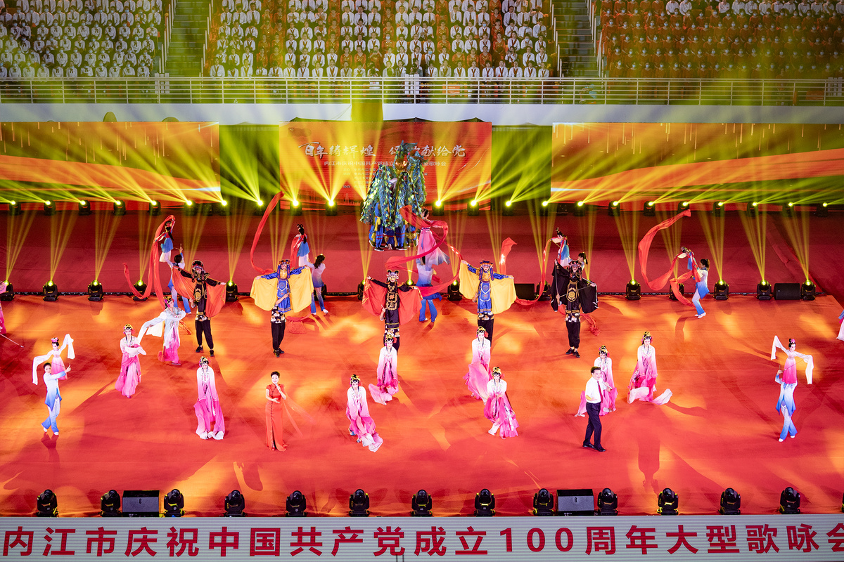 绚丽的舞姿、嘹亮的歌声、热烈的欢呼......6月25日,内江市体育中心热情沸腾。在这里,“百年铸辉煌·颂歌献给党——内江市庆祝中国共产党成立100周年大型歌咏会”正式开唱。