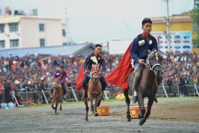 一匹匹骏马驰骋于火把广场,展现出彝族小伙的矫健与力量。