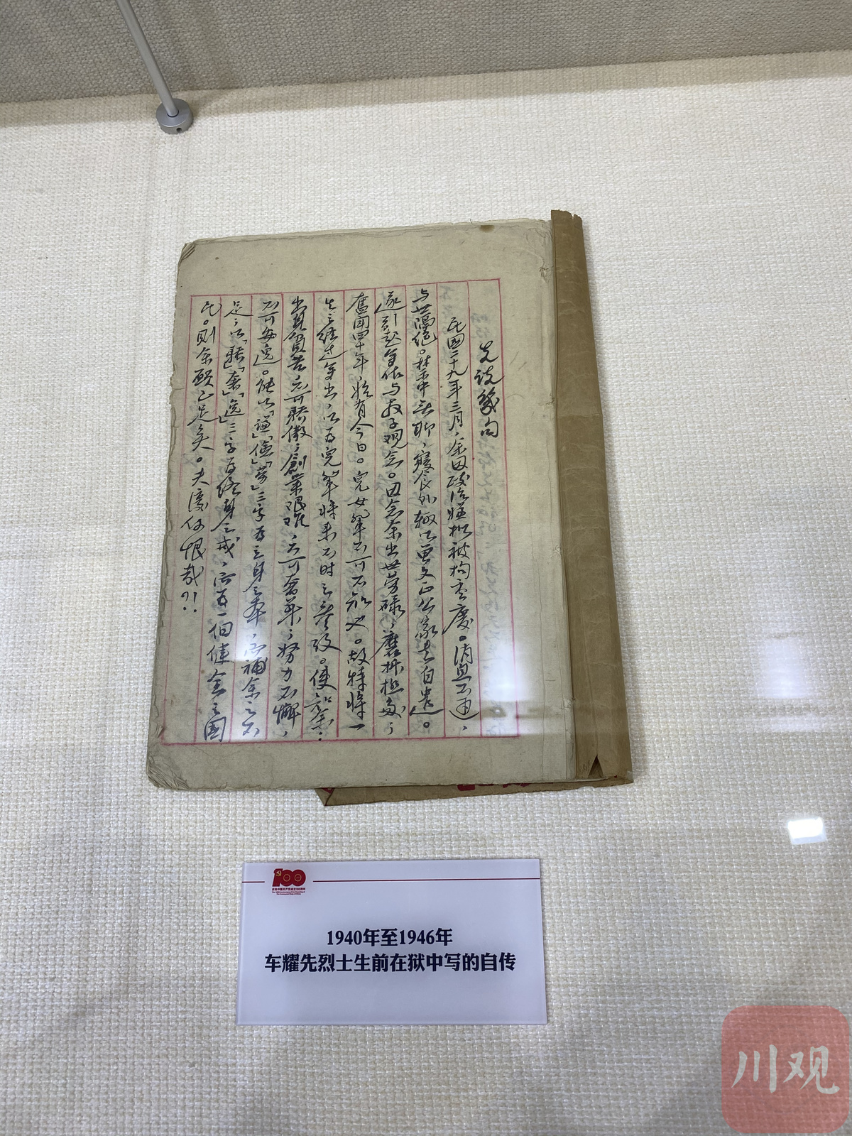 展览现场,除了打造努力餐楼的沉浸场景之外,还展出了车耀先的一些历史照片,以及1937年车耀先主编《大声》周刊复刊号,1940年至1946年他被捕后在狱中所写的自传。