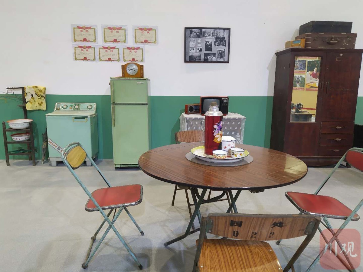 “收音机、自行车、缝纫机及手表,曾被称为‘三转一响’,是当年每个家庭希望拥有的“四大件”,现在它们也变成了收藏品。“布展方工作人员介绍,”为了反映改革开放以来的变化,我们希望从家庭生活的角度突出社会经济发展,但是展品收集却很困难。主要是因为产品淘汰太快,21世纪以来的电器买了没几年就成老古董了,80年代的电器就更不好收集,旧货市场都买不到。”好在他们获得了夹江县收音机博物馆的支持,这才让这个场景有了丰富、真实、富有细节的年代感。“该馆收藏有800多台,对外展示了200多台,我们挑选的几台是在上世纪80年代生产、上市的。”
