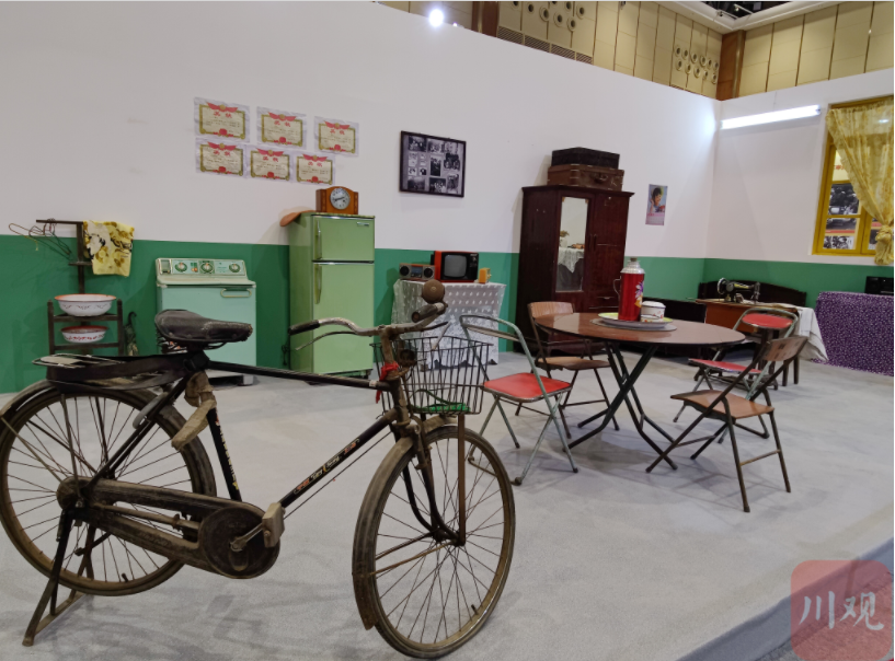 6月26日,“壮丽史诗 伟大飞跃”——四川省庆祝中国共产党成立100周年主题展览在成都世纪城会展中心揭幕,自行车、缝纫机、暖水瓶和搪瓷缸……一个上世纪80年代的家庭场景引出不少参观者的共鸣,纷纷拿出相机拍照。