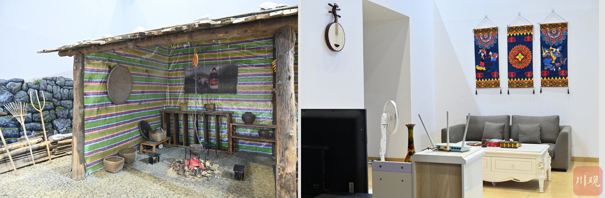 在各个展陈版块中,樊承志对脱贫攻坚这部分内容感触颇深。近年来,我省大力实施彝家新寨、异地扶贫搬迁、危房改造等住房保障工程,贫困群众从不蔽风雨到住有安居。在展览现场,专门设置了一个彝家民居新旧对比的场景再现,从破旧的土坯房到明亮现代化的楼房,沙发、茶几、电视等家电家具一应俱全,这样的新旧对比,十分具有视觉冲击。