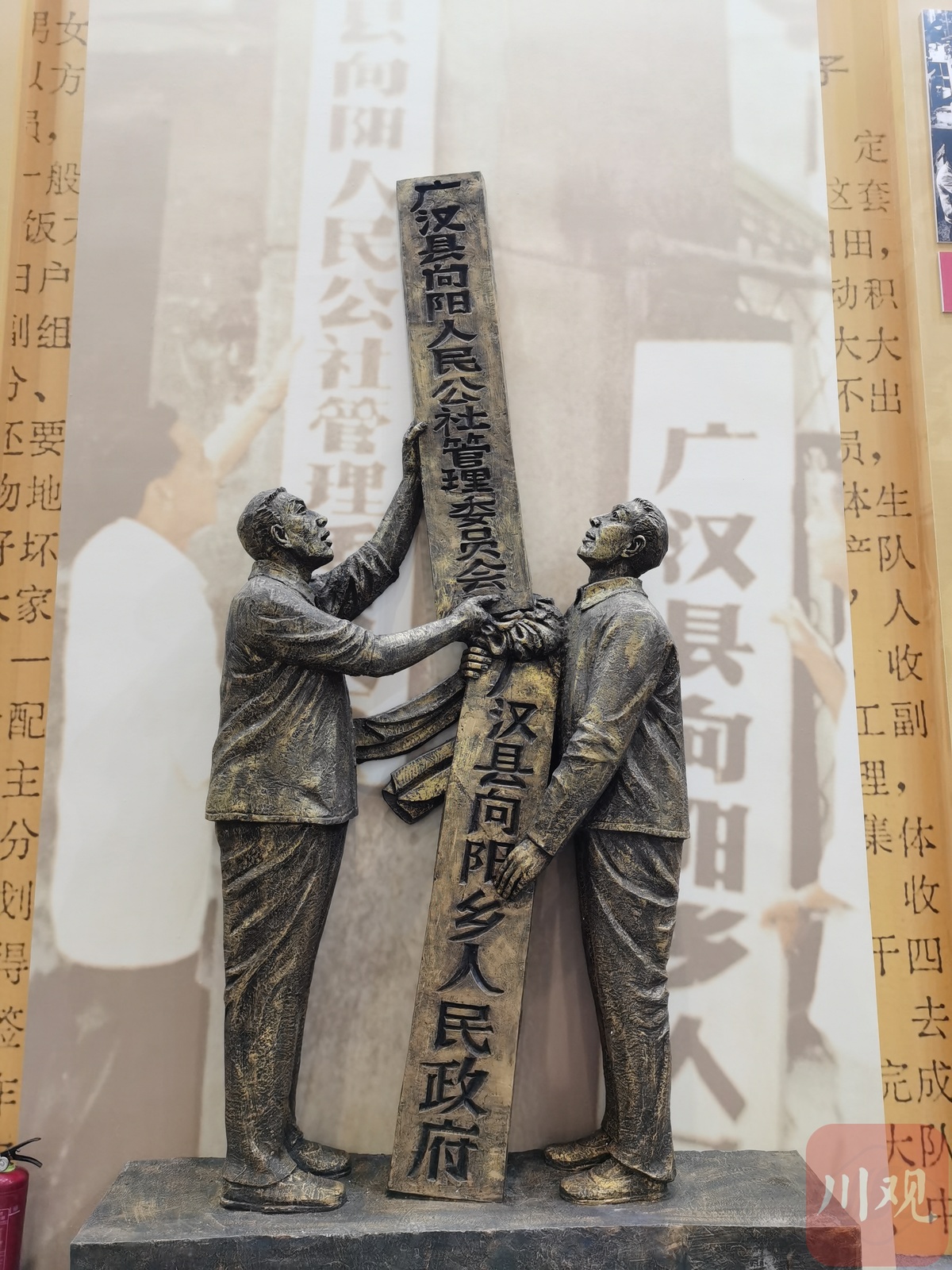 刊登有《实践是检验真理的唯一标准》的光明日报报纸、邓小平《解放思想,实事求是,团结一致向前看》讲话提纲手稿……展览第三篇章,多件展品折射出当年的伟大变革。1978年5月1日,正是光明日报刊登的这篇特约评论员文章引发了真理标准大讨论,成为正本清源、扰乱反正和改革开放的思想先导。展览现场,在广汉工作的曾秀青专门在向阳公社的一处场景前合了影。1980年,广汉县向阳乡摘掉向阳人民公社的牌子,成为全国最早实行党政分工、政企分开的新体制的乡。
