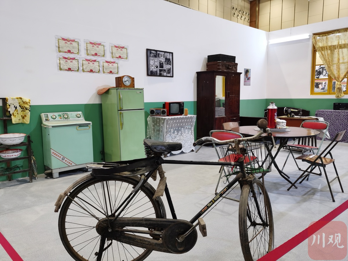 值得一提的是,展览在现场复原了一个上世纪80年代的家庭场景。收音机、自行车、缝纫机等陈设充满年代感,也成为了改革开放后人民生活水平提高和科技进步的见证之一。