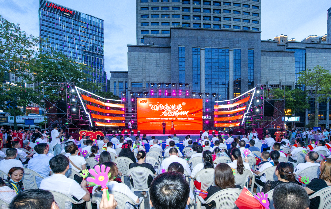 颂歌献给党,奋进新时代。6月25日,攀枝花市东区庆祝建党100周年文艺展演暨“两优一先”“光荣在党50年”表扬大会在金海广场举行。
