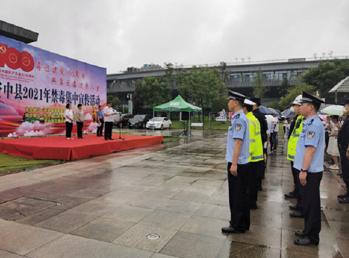 在第三十四个国际禁毒日来临之际,6月25日,内江市资中县开展了主题为“喜迎建党100周年、共享无毒健康人生”的国际禁毒日宣传活动。