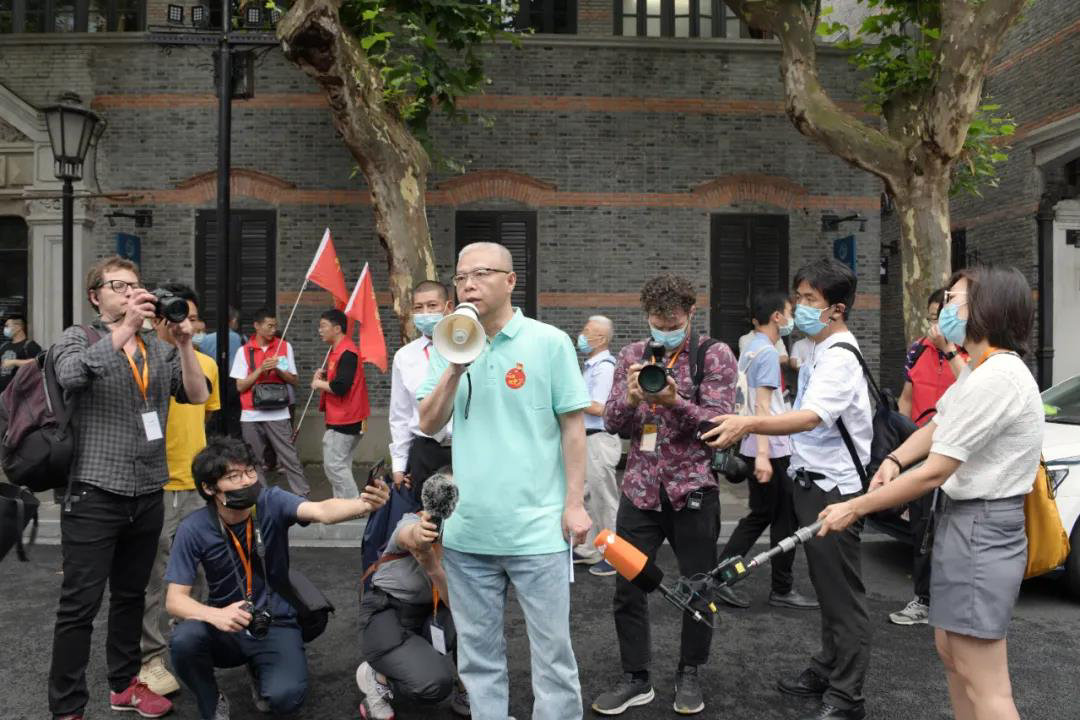 也是6月17日上午,我们在上海一大会址前合影留念,开展党建活动。没想到包括美国、英国、西班牙、日本、澳大利亚等外籍朋友围着我们转。身边的西班牙友人问我:“你们为什么到这里来?”