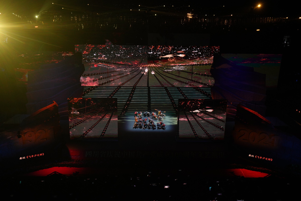 值得一提的是,来自高校的演出团队确实是保证整台晚会恢弘气质的重要组成部分。西华大学、四川音乐学院等派出了百人大队伍,6块舞美大荧幕背后是由80位四川艺术职业学院的学生运作,参加过“春晚”的川大、川师大学生群体也加入其中,刚摘得“荷花奖”的川师大舞蹈系团队也和教师索金星一起创排节目《飞夺泸定桥》,四川省歌舞剧院近10位青年编导几乎全员出动,主抓着演出各章节的创排,包括演唱最后压轴主题曲的青年歌者顾文梦,也是一位“90后”。