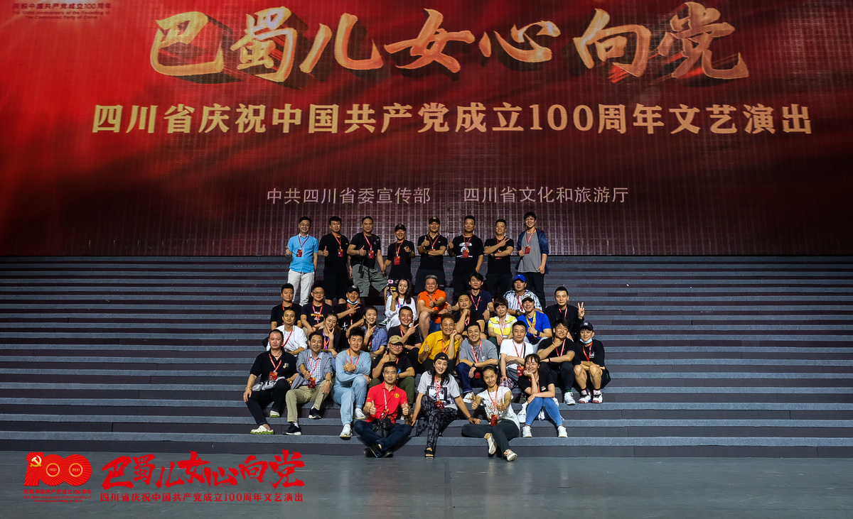 的确,这场演出在阵容上确实也呼应着“巴蜀儿女心向党”这一主题,川味十足。在短时间内就汇聚起了四川社会各界力量,既有四川省歌舞剧院、四川人民艺术剧院、四川交响乐团、南充歌舞团、五粮液艺术团等文艺院团,也有四川大学、四川师范大学、西华大学、四川音乐学院、四川艺术职业学院、四川电影电视学院、四川警察学院等高校力量,还有来自泡桐树小学、芳草小学等优秀演员、师生代表参与。大家在台前幕后都秉承着高水准、严要求的文艺工作追求,用精益求精的精神反复打磨每一个作品,展现一个百年政党波澜壮阔的历程,将政治性和艺术性有机结合。