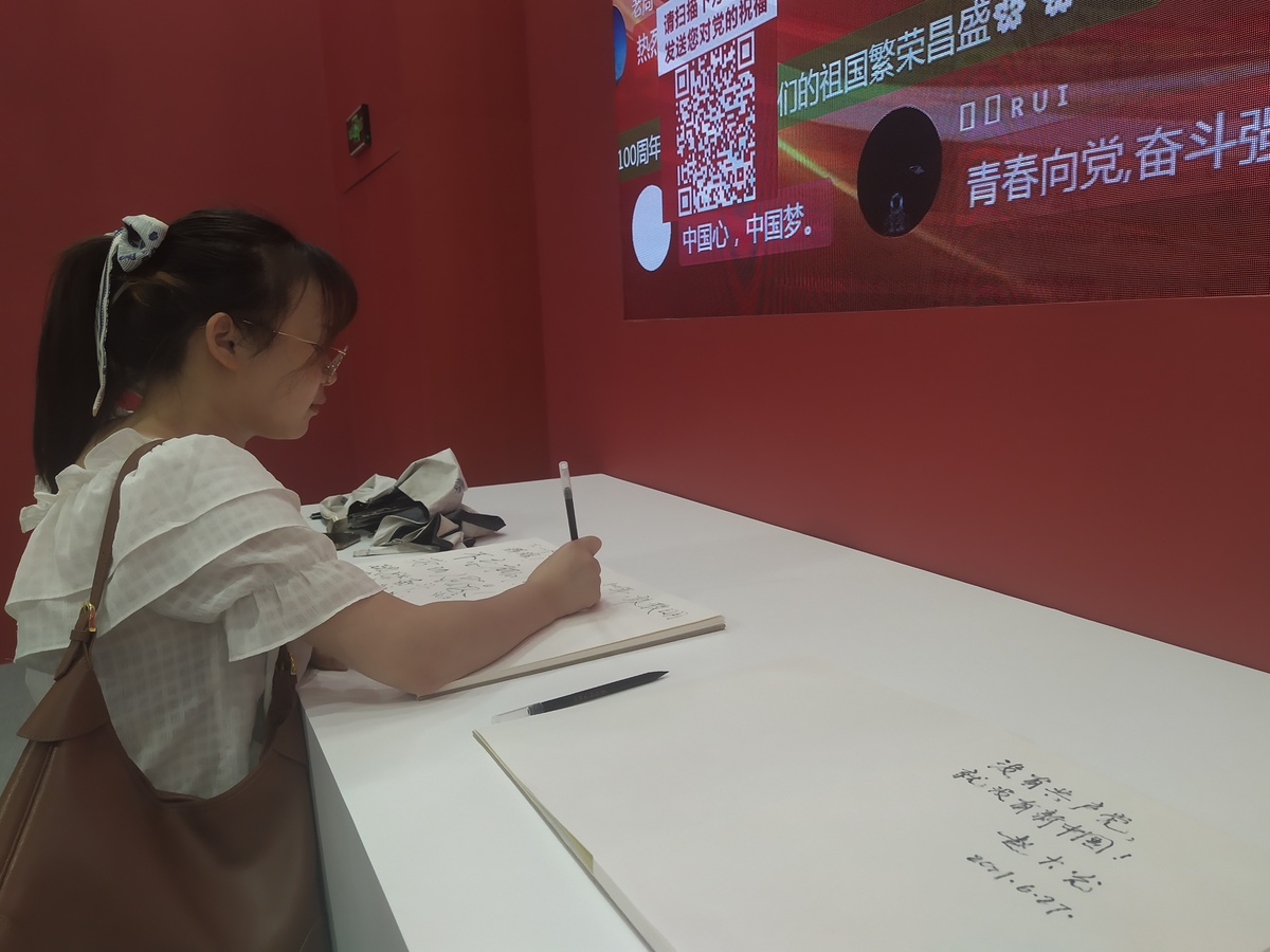 6月27日,“壮丽史诗 伟大飞跃”——四川省庆祝中国共产党成立100周年主题展继续受到观众追捧。炎炎夏日,观众们络绎不绝前往世纪城会展中心观展。1200多张珍贵史料照片和400余件文物实物展品,勾勒出共产党伟大的百年征程,不少观众在展厅内流连往返,并在观展结束后激动留言,“展览让我找到了奋斗的落脚点!”“下一个百年交给我们!”