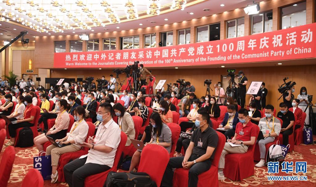 6月27日,庆祝中国共产党成立100周年活动新闻中心在北京举办首场新闻发布会,中央党史和文献研究院院长曲青山等向媒体记者介绍新时代党史和文献工作。这是发布会现场。新华社记者 任超 摄